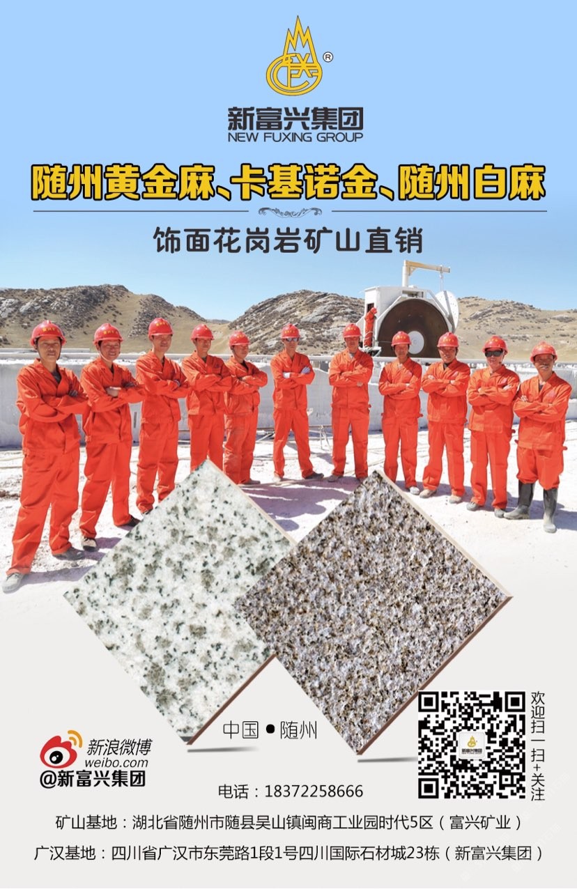 新富兴集团旗下矿业板块国内拥有6座大型矿山分别分布在福建、湖南、湖北、新疆等省市盛产:664#罗源红、随州黄金麻、黄金钻、卡基诺金、随州白麻、新疆豹皮钻、焉耆白麻、湖南芝麻灰等花岗岩;石材板块分别在四川省以及新疆维吾尔自治区;新疆拥有三家企业其中四川省范围内拥有3个大型石材加工基地;成都工厂位于成都沙西线主营:花岗岩工程建设用石材;2013年成立广汉富兴石业有限公司在四川广汉市修建两家工厂分别位于:四川省广汉市东莞路一段1号四川国际石材城23栋和29栋;总占地面积55亩。成都工厂负责销售自有矿山的石材产品以及其他品种进口、国产花岗岩石材产品大量使用于市政工程、房地产以及大型公共设施;广汉工厂除专业批发自有矿山:福建、湖北、湖南、四川、新疆等省市自有矿山石材产品外,大理石是新富兴集团四川地区石材产业的主力产品,早在1998年开始新富兴集团前身企业之一“成都市金牛区富兴石材加工厂”就已经成为西南地区的进口大理石供应商之一;现目前集团规模不断扩大并在福建、湖南、湖北、四川、新疆等地区开发6座大型矿山并有着的矿山资源优势掌握了产品的源头以及多年积攒的社会的人脉资源与管理团队拥有各种先进的技术与设备;承接国内外各种异形大理石、花岗石加工,厂区拥有先进的水刀设备多台拥有红外线桥式切割设备数十台,全自动电脑仿形设备数十台,全自动线条磨边流水线设备多台,异形圆柱设备多台,异形车床等众多异形设备同时拥有熟练的技师配合优秀的管理者及高效率的服务团队使得新富兴集团四川地区石材产业板块一直处于当地位置,为集团业绩做出杰出的贡献。