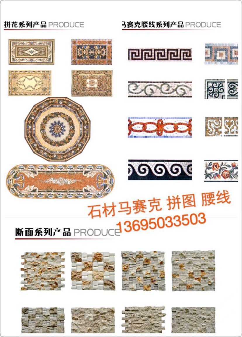 石材加工 水刀拼花 石材马赛克 拼图 拼花腰线 复合板等系列 欢迎来电询价 ??13695033503