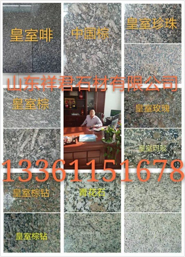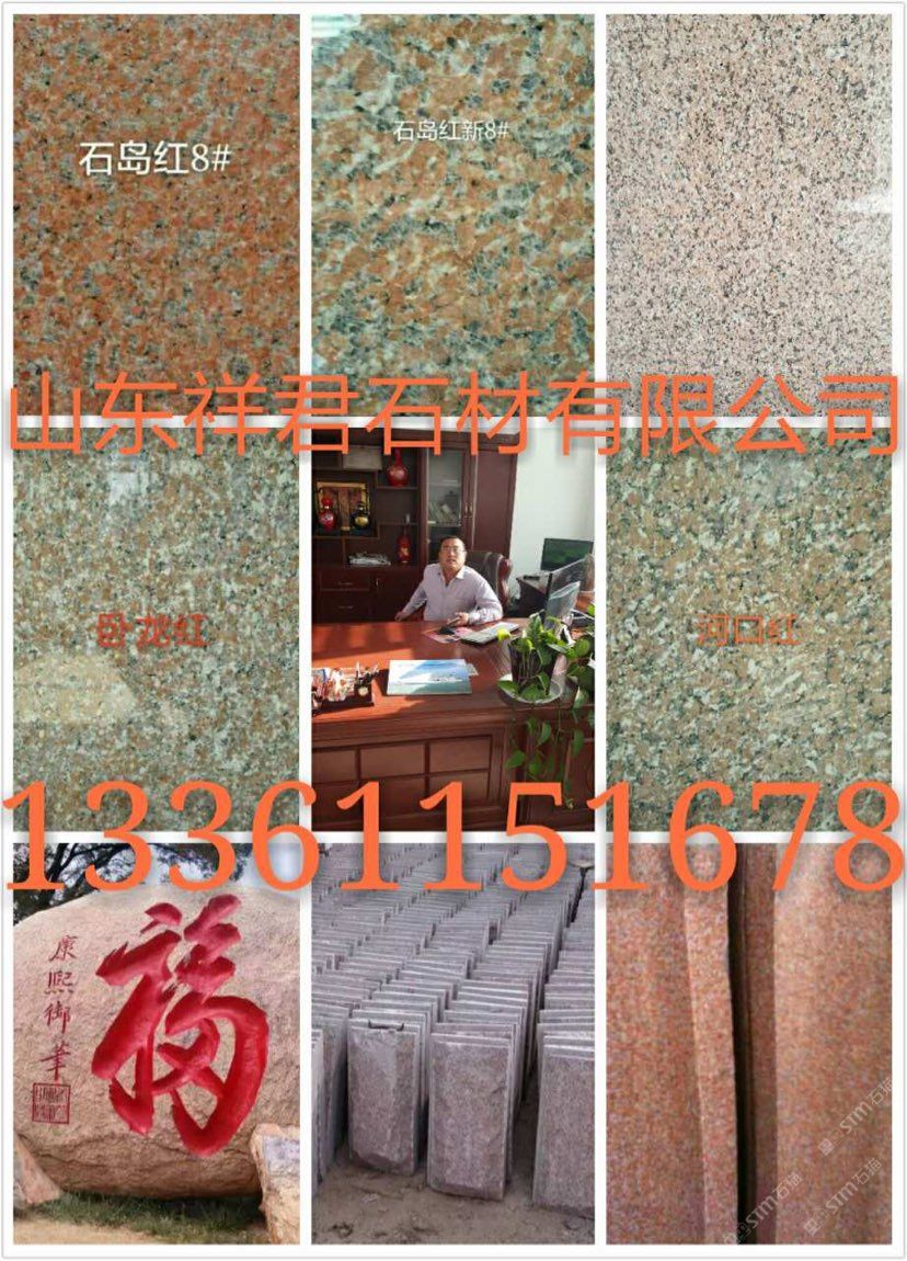 山东荣成市祥君石材有限公司厂价直销!石岛红!!?;ê欤?!荣成灰??!皇室冰花!!皇室玛瑙 !! 紫晶钻!!皇室珍珠!!皇室玫瑰!!皇室啡!!皇室棕钻!!中磊红!!龙须红!!白麻!!黄金麻!!中国棕!!文登灰!等山东石材及异型加工。全自动磨光,大型喷砂机.红外线切割。