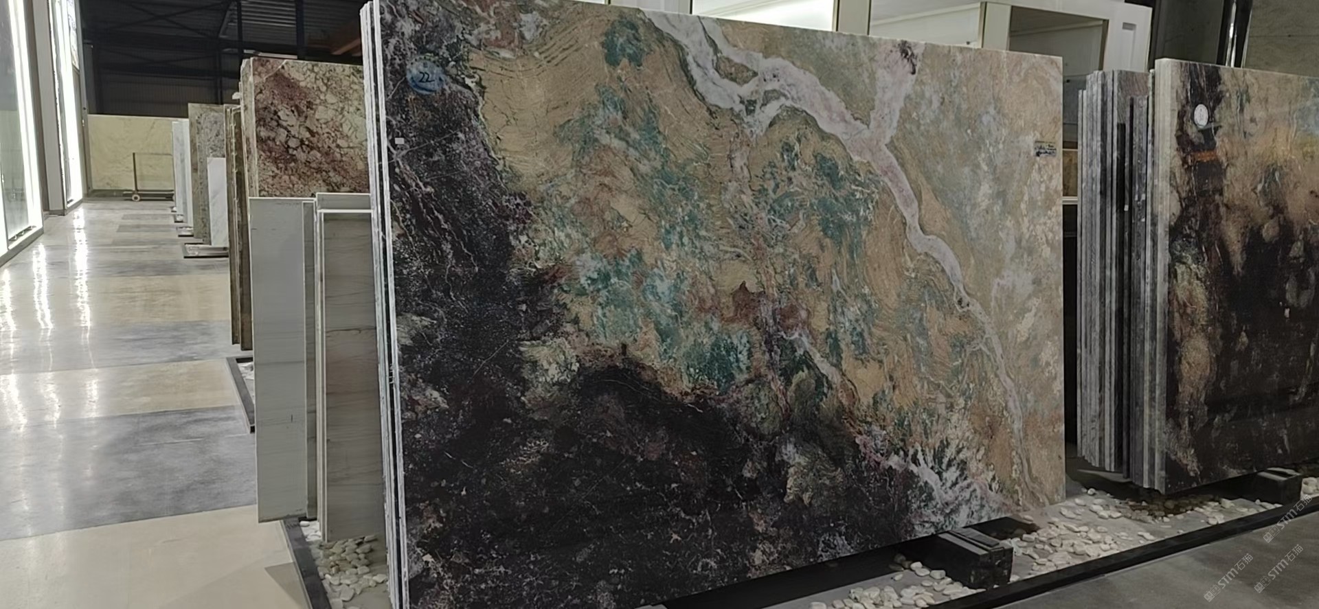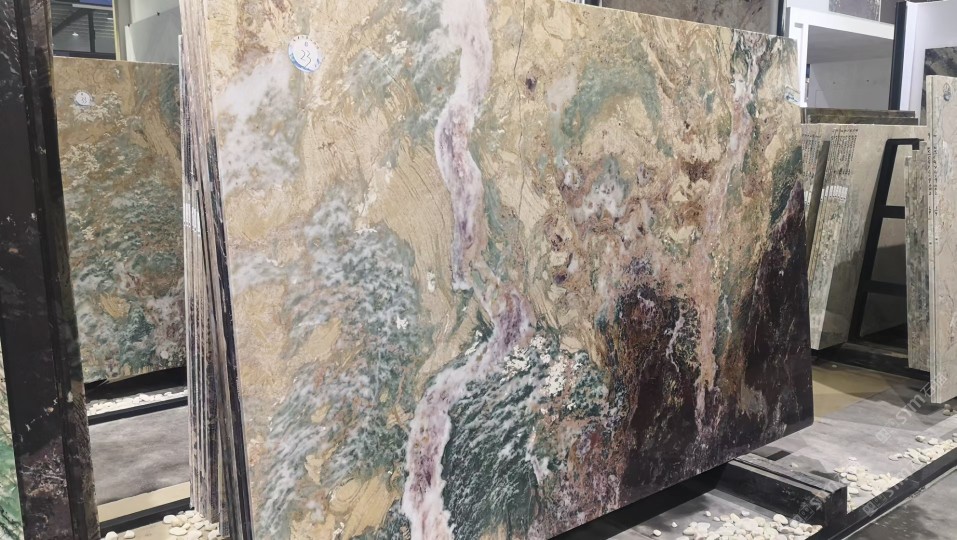 新景印象石画馆常年库存玉石、奢石、山水画,现货大板近15万平方,品种齐全,库存丰富,可满足不同客户群各个价位板面需求。为客户提供了更全面的选择空间。未来,这里更将被打造成为华东地区天然背景石材选材中心。\