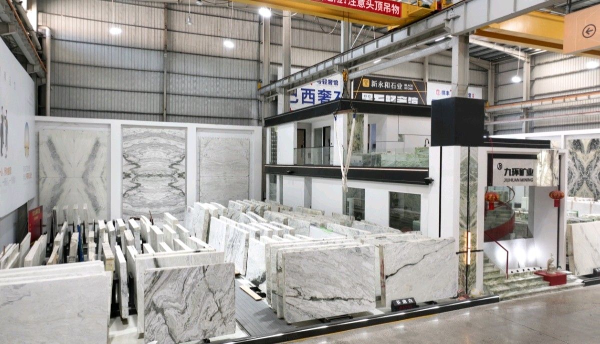 公司创建初期驻点于东升大板市场,随着市场需求,不断进行战略布局,2016年驻点高时大板市场,2017年驻点艺兴大板市场,同时期增加澳磊门店,2018年,九环增加远达专场,拥有数百个架子位,凭借优质服务深受客户认可与信赖。2019年,九环于顺盛增加加工点,主要生产“水晶木纹”,年产量达15万平方米。该年底顺势而上,增加均利厂、新寰宇厂及振南厂三个石材加工厂,并不断拓宽市场品类,由原先单一的“水晶木纹”,又增拓“印度蓝金沙”与“土耳其星月白”两个大理石品种,年产量接近30万平方米,公司经营得到进一步优化。2020年九环石业进军南翼点,新增“卡索灰”及“古堡蓝”两个大理石品种,拥有自己的大型矿山开采权,自主开采销售,产品种类大幅度增加,业务领域进一步拓展。2021年至今,九环石业新增澳盛点,新增品种“卡地亚灰”包矿。至此,九环石业在“世界石都”水头战略版图囊括了澳盛、新寰宇、东升、远达等驻点,具备良好的区位优势,发挥着重要的协同效应。\
