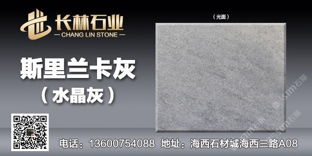 主营:水晶灰(斯里兰卡灰),底色为中性灰,配以灵动的深色纹理点缀,给人以灵动飘逸,层次分明的美感,具备低调奢华的气质。