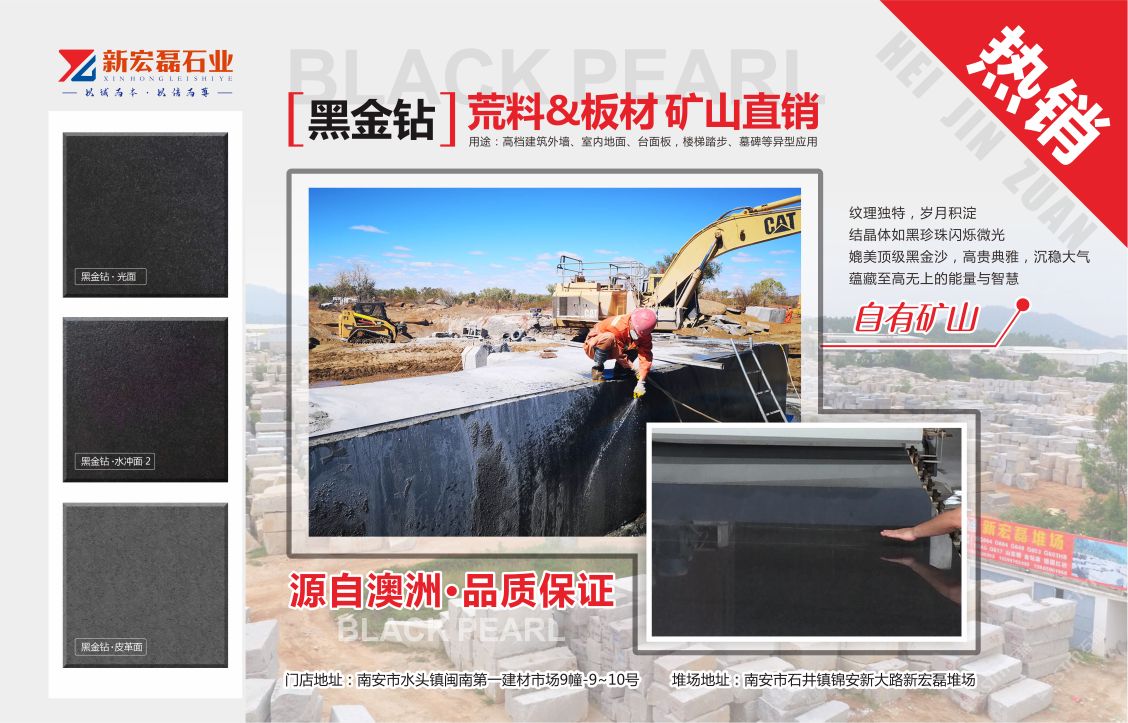 新宏磊石业有限公司自有矿山,荒料堆场50余亩,有花岗岩和大理石加工厂,是集矿山开采、板材生产加工、销售出口为一体的综合性石材供应商,在石材行业已经拥有10年以上的生产与销售经验。