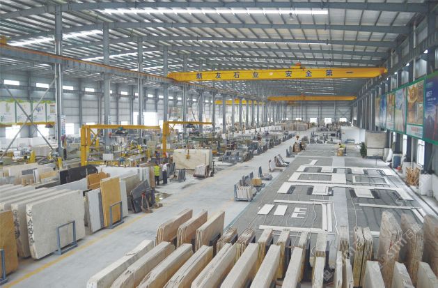 工厂占地面积约50000m2,其中加工车间约40000m2;拥有BM快锯、烘干补胶线、大板自动磨、红外线桥切机、红外线仿形机、切边机、抽槽机、多功能线条机、数控绳锯、圆柱机、立车、五轴水刀拼花机、复合液压设备、对剖机、定厚机、等各类先进设备。专业加工:大板、工程板、复合板、弧板、圆柱、石线、雕刻、拼花等产品。现有员工280人,年产能加工大板100万m2以上,加工工程板50万m2以上。\