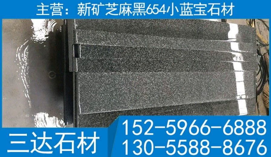小蓝宝新654芝麻黑-三达石材 连15259666888 王13055888676(微信同号)专业中国小蓝宝新矿G654芝麻黑供应商,自有矿山、荒料充足,工厂位于宁德市屏南县路下乡;主营:小蓝宝、小兰宝、中国小蓝宝、宁德小兰宝、新矿芝麻黑、宁德芝麻黑、屏南芝麻黑、宁德654、屏南654、新矿654、新矿深灰麻、新矿童子黑、黑色石材、灰色石材、新矿黑石、小蓝宝石材、小蓝宝花岗岩、新芝麻黑石材、新芝麻黑花岗岩、新654石材、新654花岗岩、宁德G654、屏南G654、新G654、新矿G654石材、新G654花岗岩、g653石材、g3554石材、g653花岗岩、新矿童子黑、新矿章丘黑、g3554石材、屏南小蓝宝、正矿小蓝宝、深黑色石材等;加工:墓地石材、墓碑大小头、石材水沟盖板、花岗岩游泳池盖板、楼梯踏步、汽车坡道砖、地铺石、路沿石、墓碑石、流水石、工程板、树框石、盲道石、树围树池、路牙石、路障石、挡车石、栏杆石、压顶石、马蹄石等园林景观石材;欢迎你来电沟通洽谈业务!