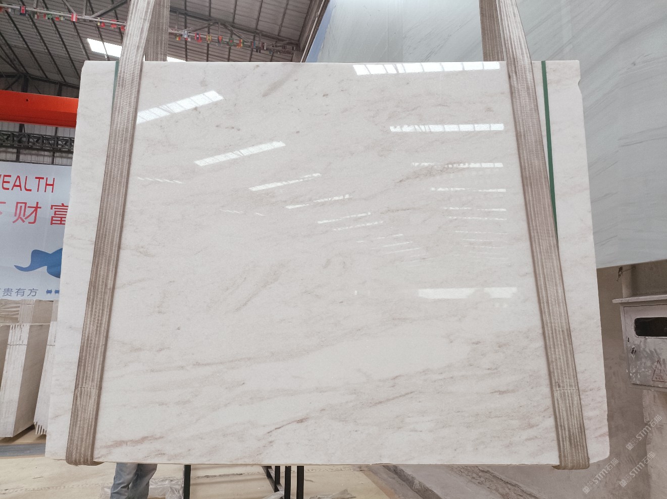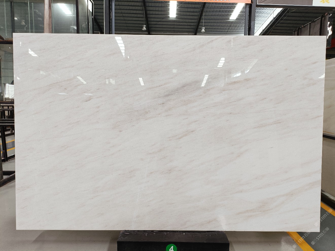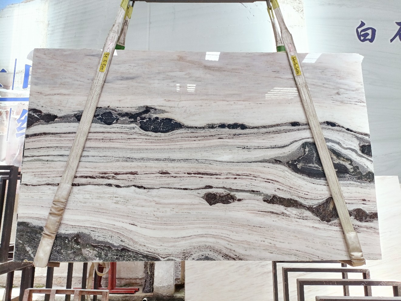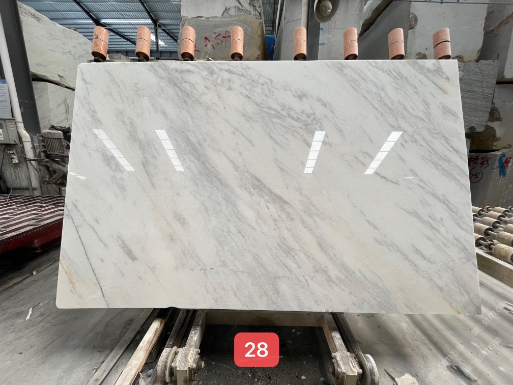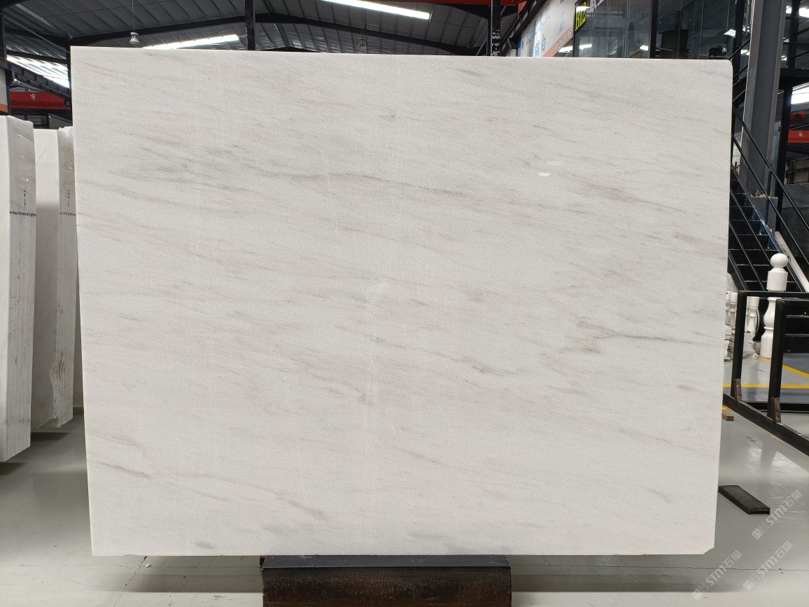云浮站石材公司开发的欧亚白独立矿山,专属道路,矿口面积约 725 亩,证件齐全。今年矿口开采出直纹,乱纹优质大板材料,矿山采用单面墙平台开采方式,10台绳锯、5台铲车、5台勾机、一台 30 吨叉车,共有职工40人,已有两个开采平台。矿山已开采多年,道路、设施都已成熟,现产能稳定增长。品质非常稳定,一石两面分别可以产出直纹和乱纹两种纹路,材质为细腻的玉质品体。