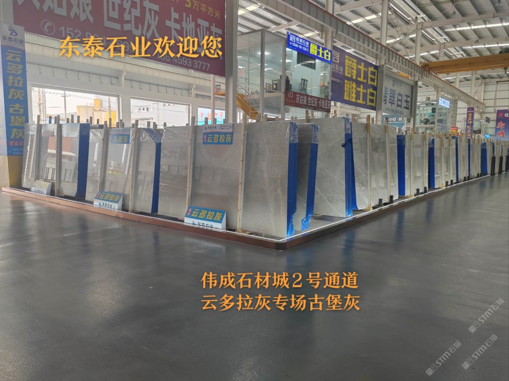 中国福建泉州水头镇蟠龙工业区伟成石材城2号门进去第二个航吊点<东泰石业>云多拉灰古堡灰