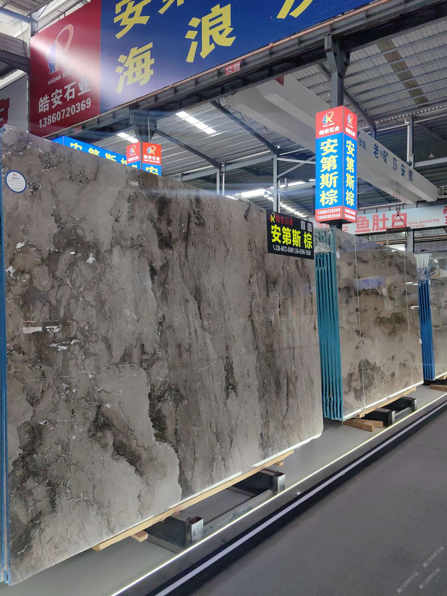 福建泉州水头镇东星大板市场8号门12区B01(皓安石业)海浪灰,安第斯棕专场