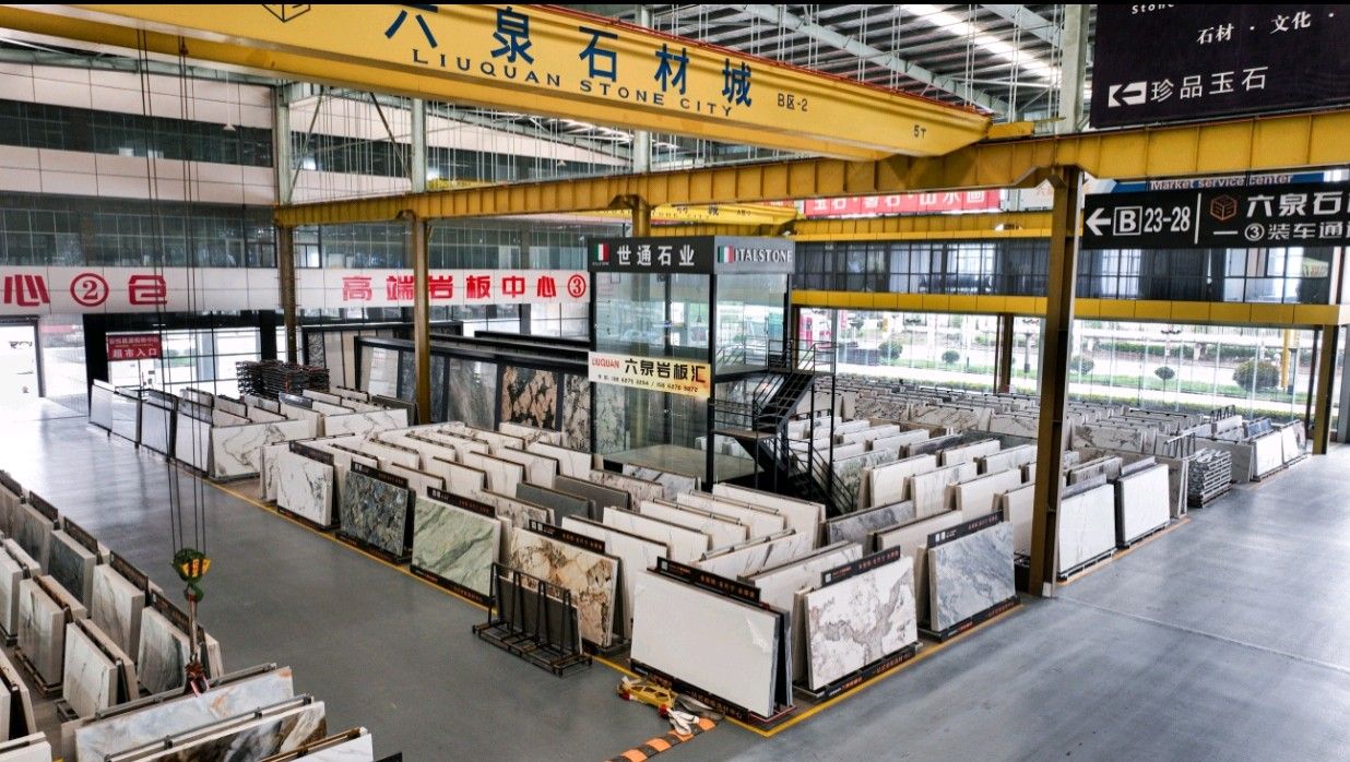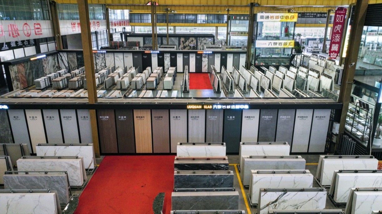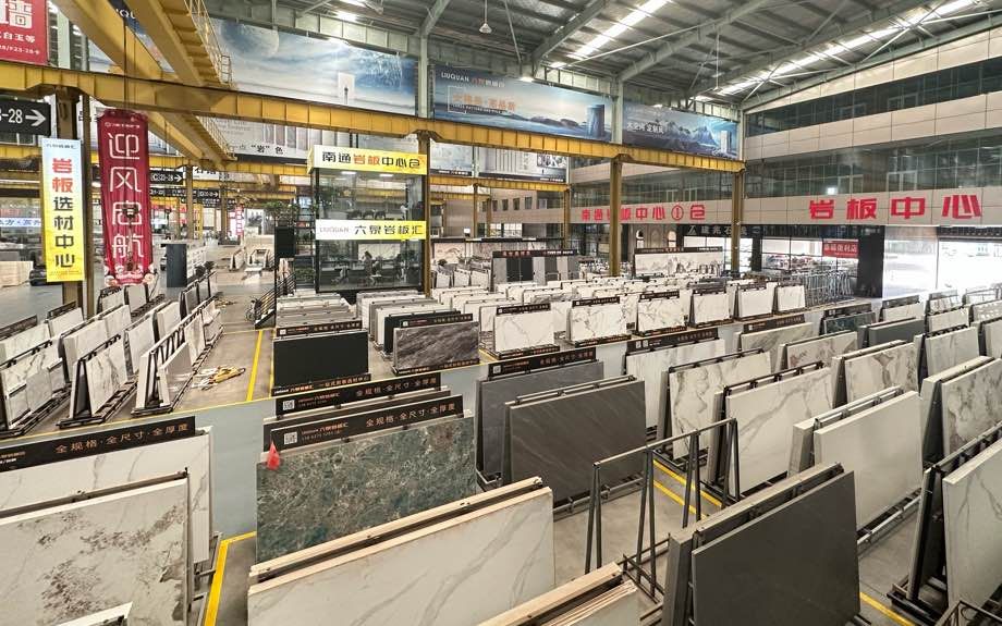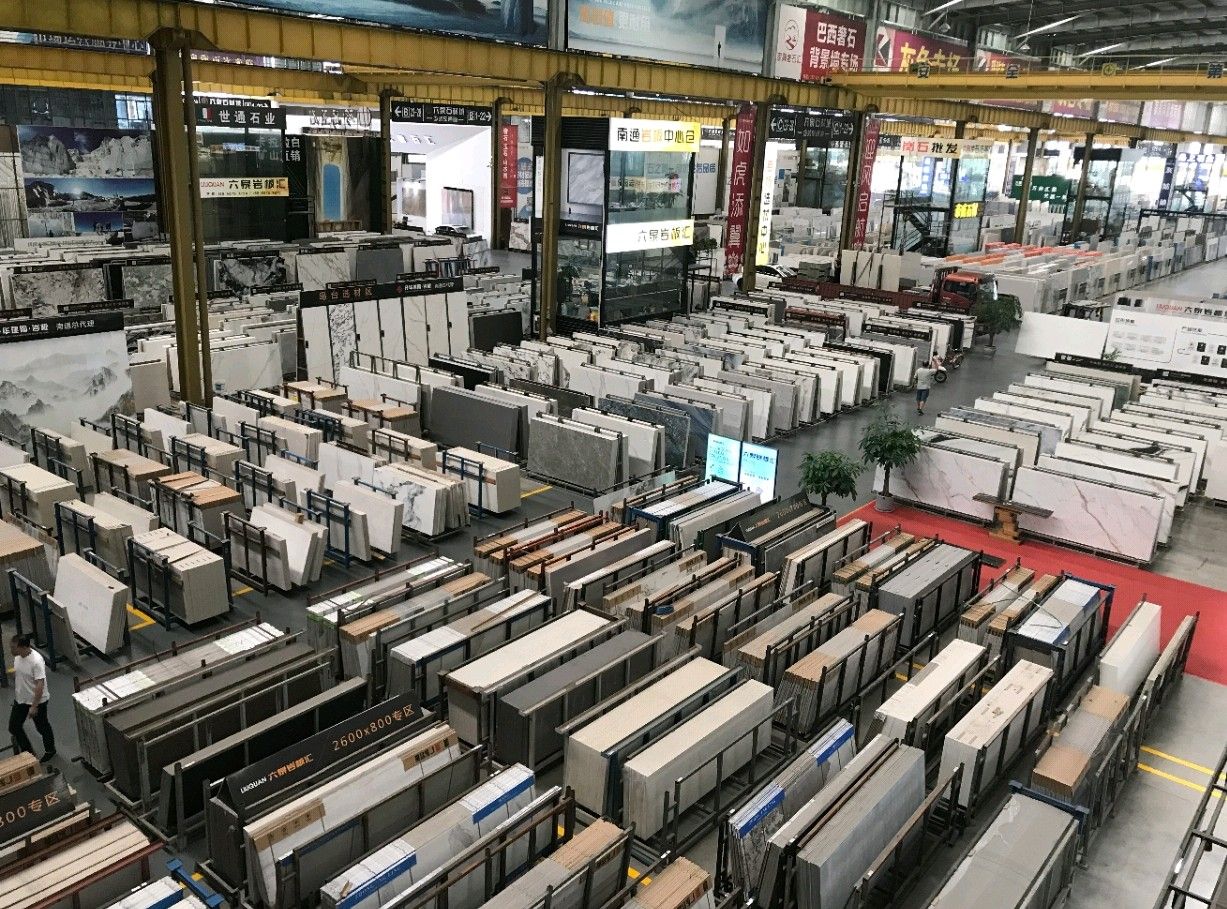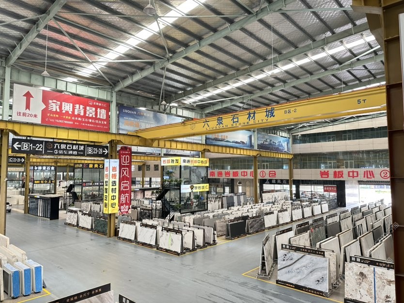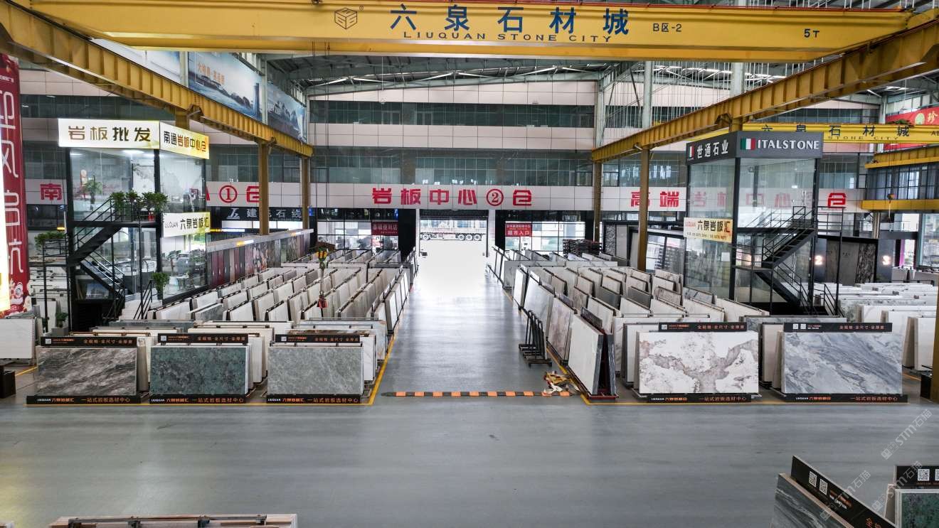 中国江苏南通六泉石材城3号通道六泉岩板中心仓