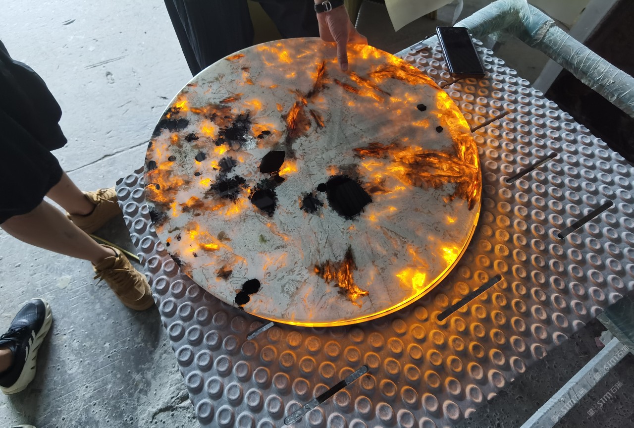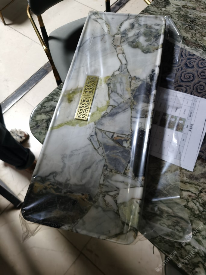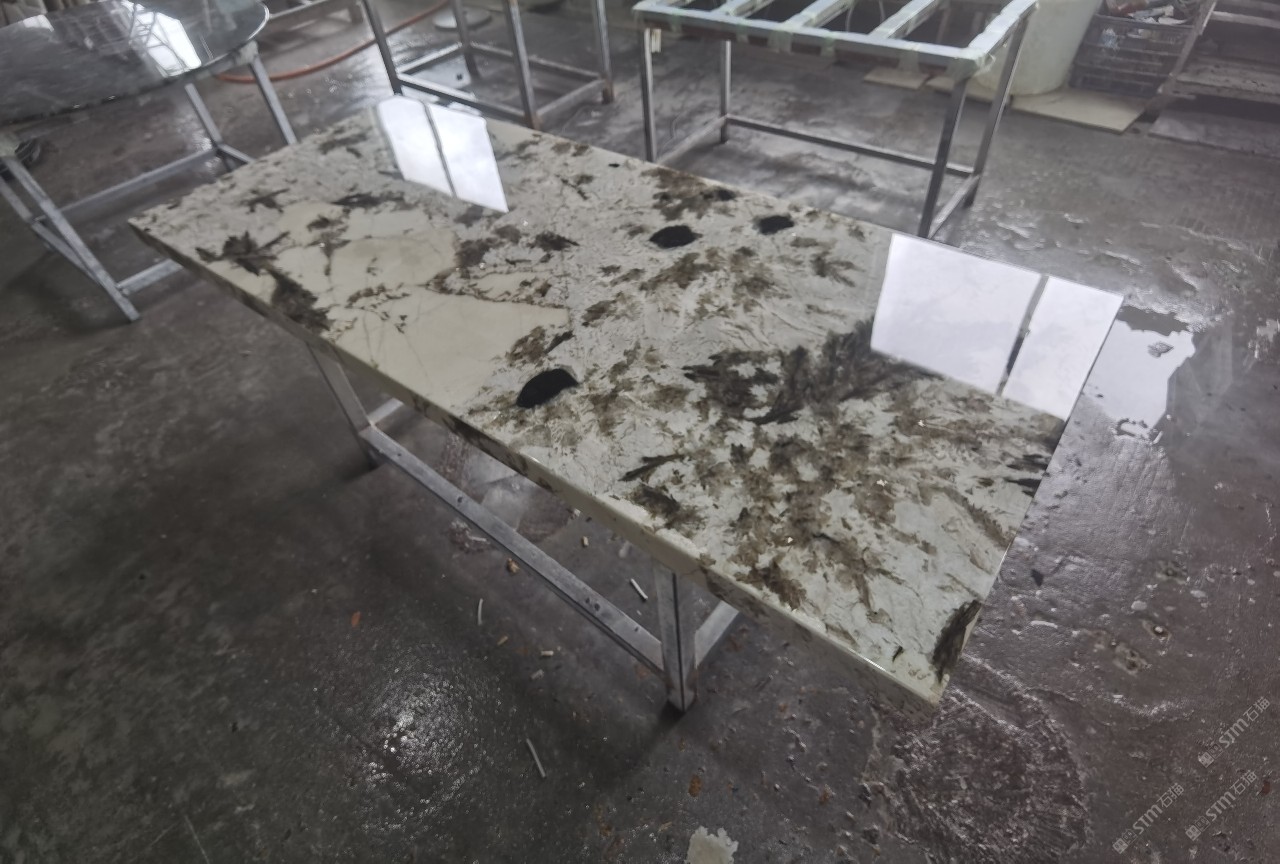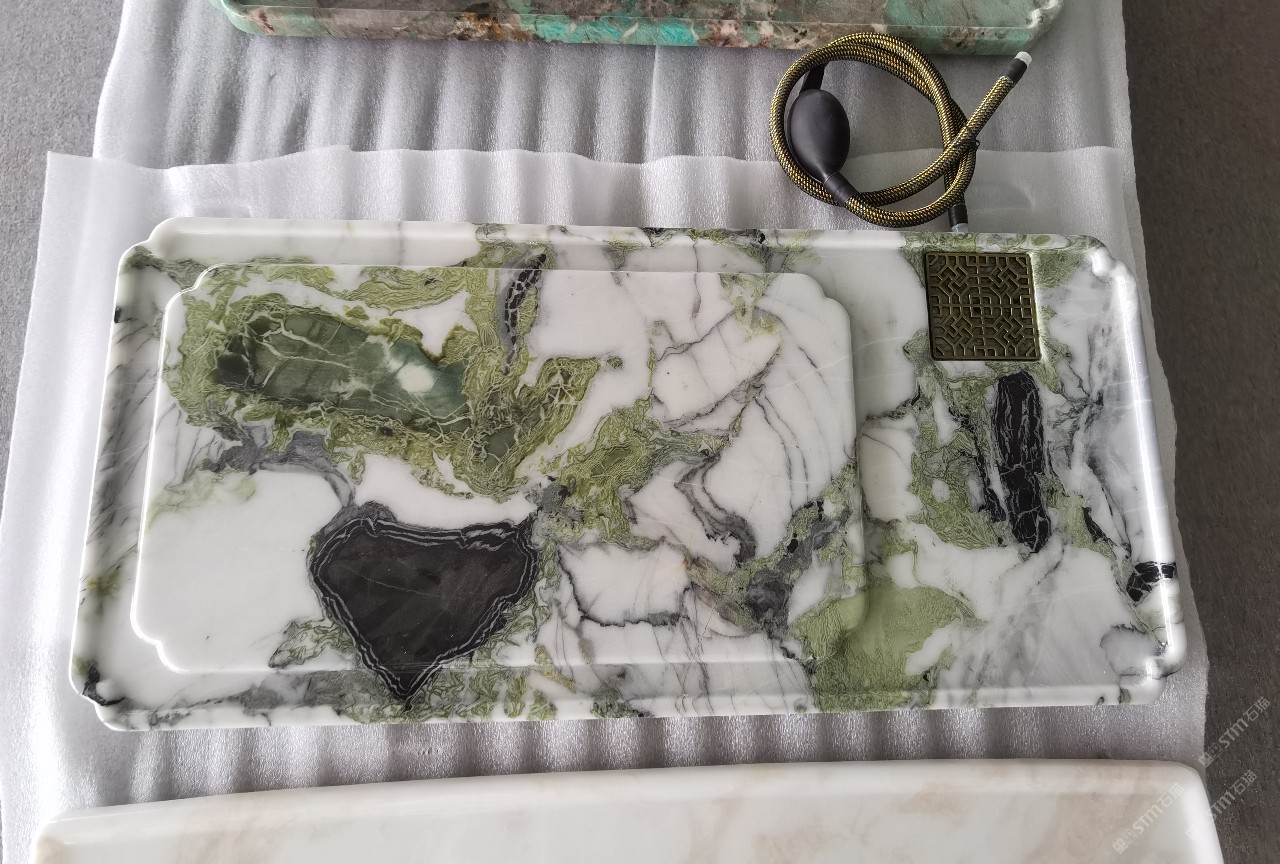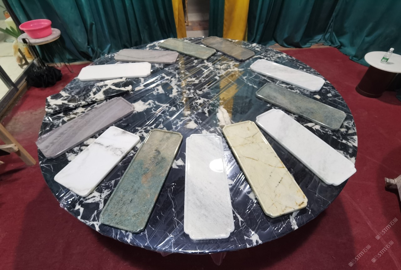 中国水头国际石材城 奢石家具厂镜面封釉工艺源头厂家高端定制茶盘 干泡台 湿泡茶盘 边几 餐桌 茶桌 五金底座搭配15710666636