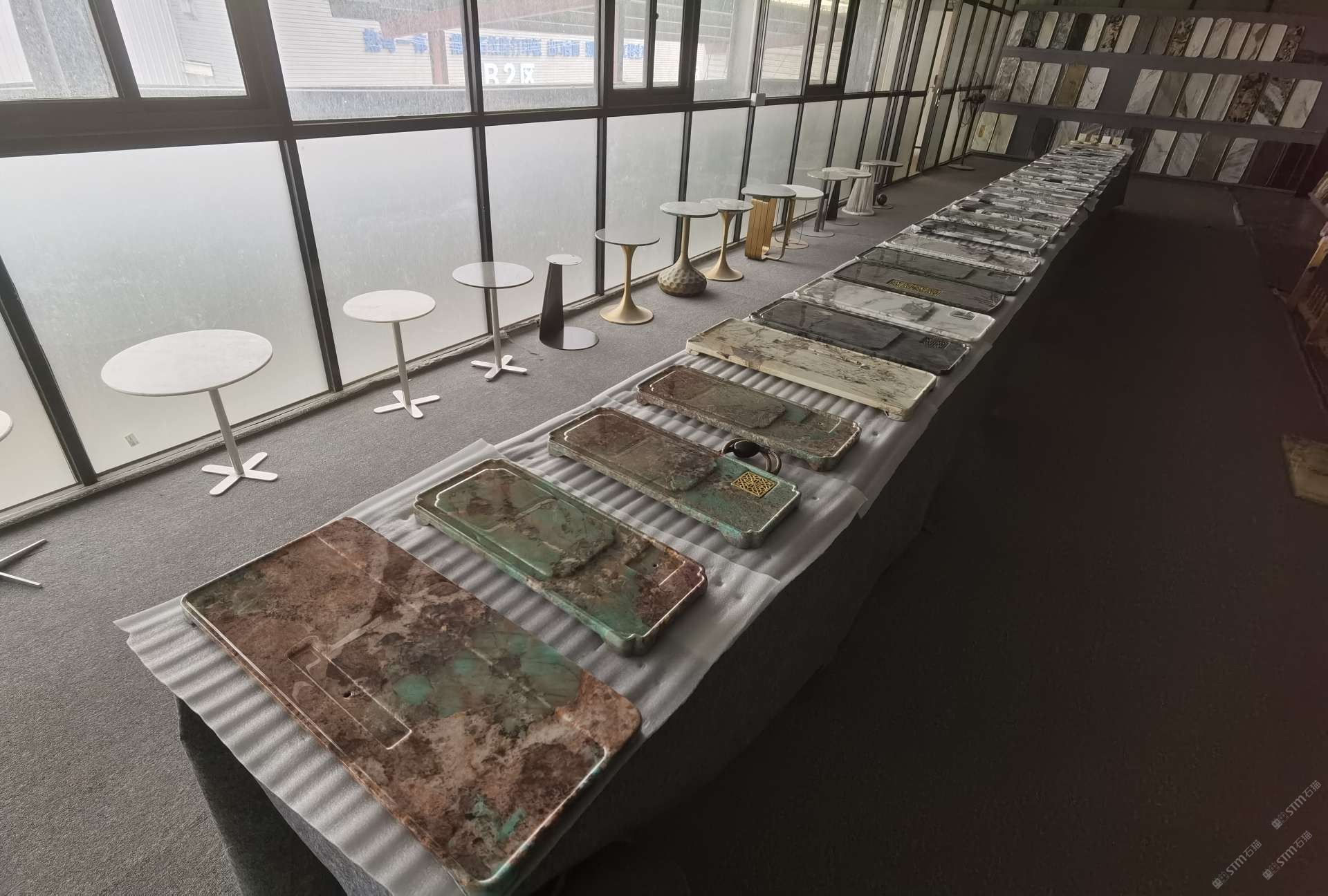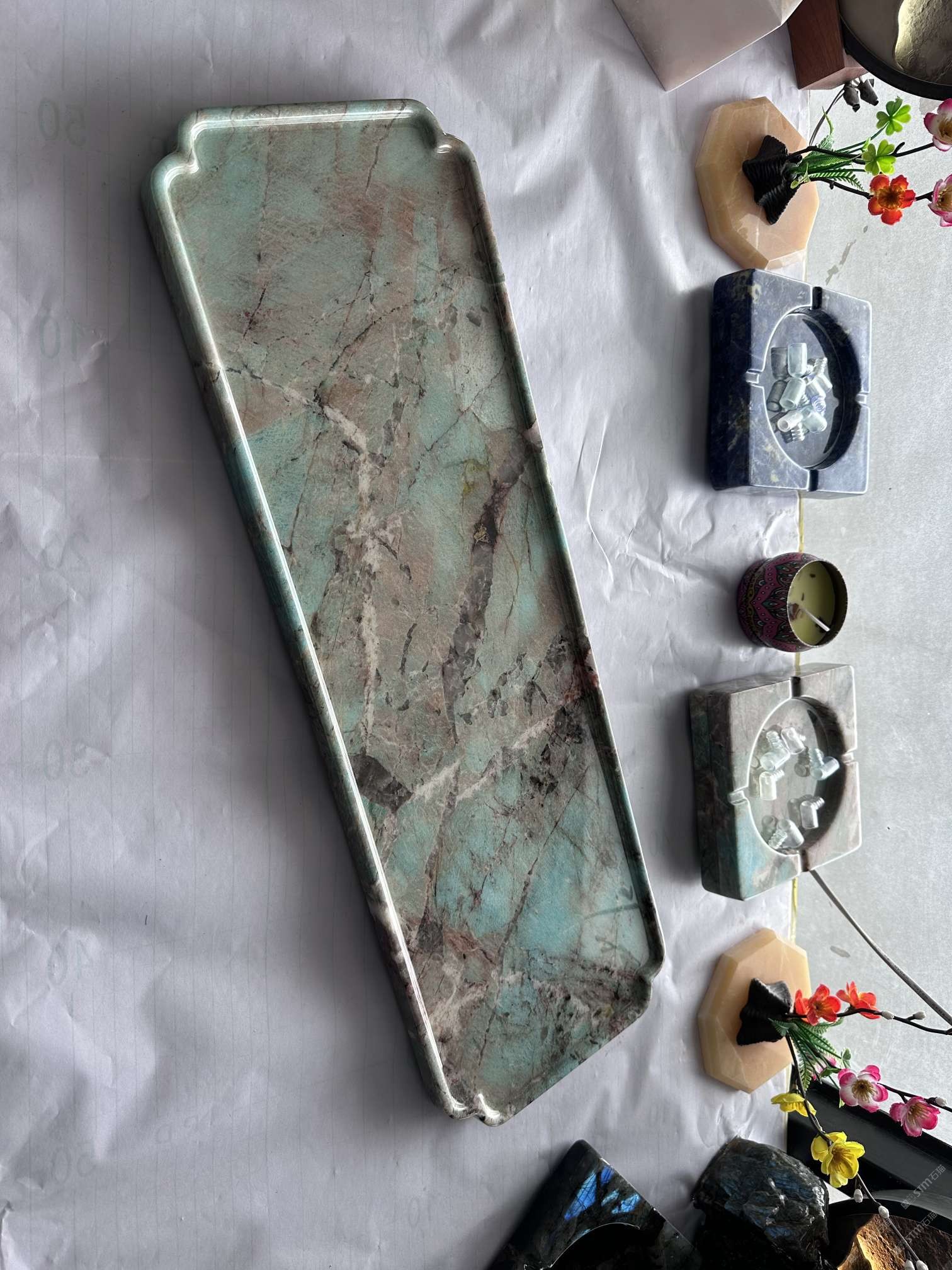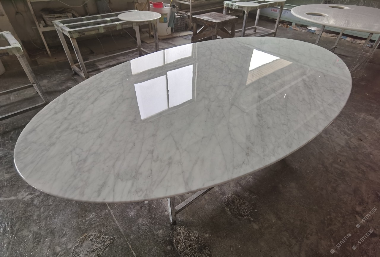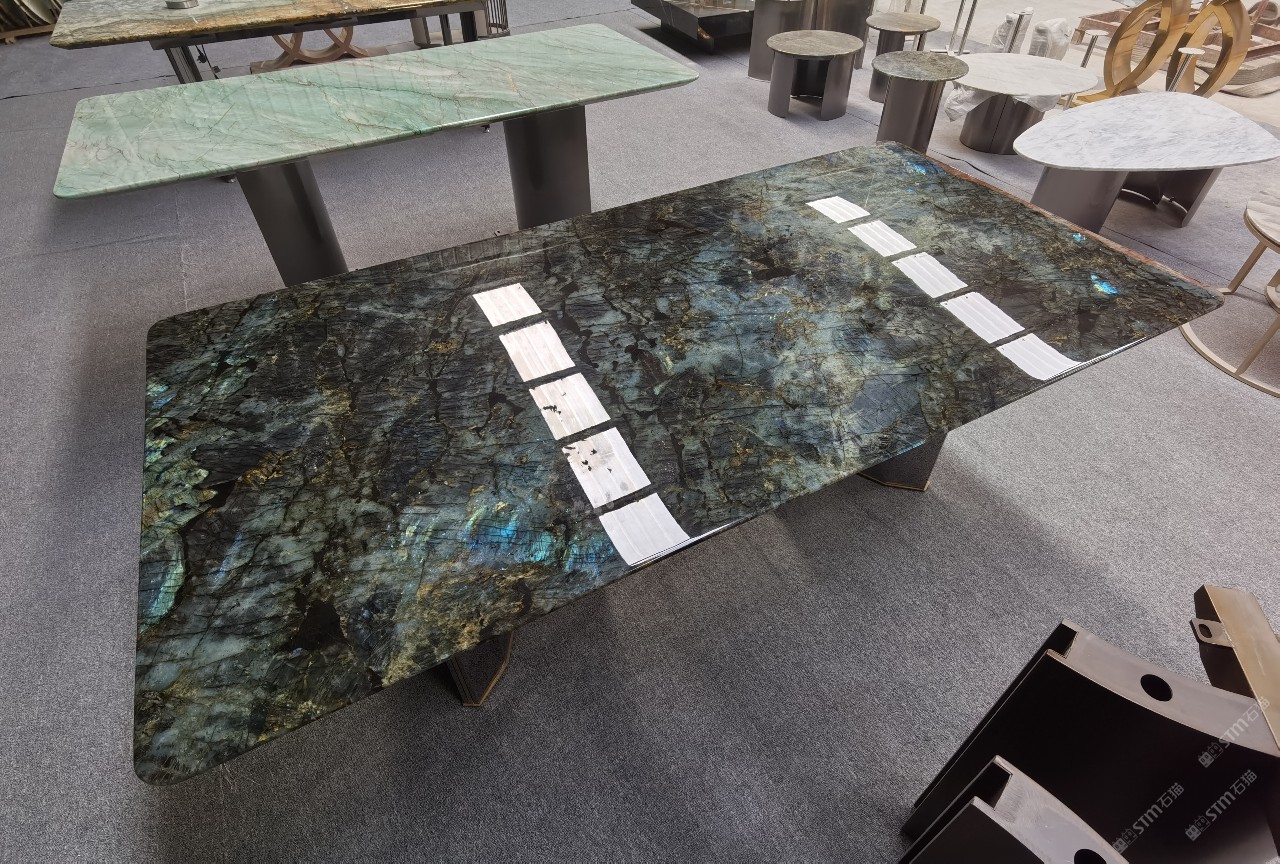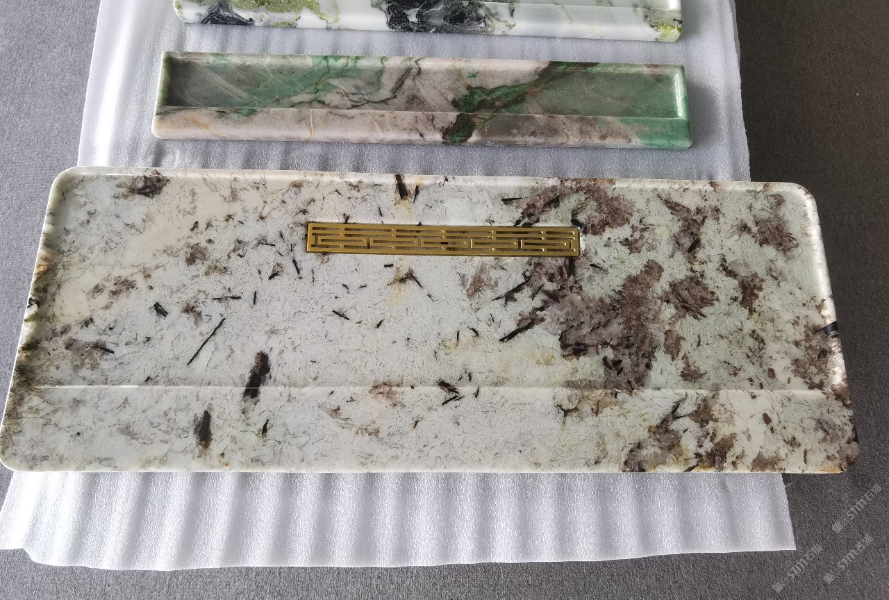 中国水头国际石材城 奢石家具厂镜面封釉工艺源头厂家高端定制茶盘 干泡台 湿泡茶盘 边几 餐桌 茶桌 五金底座搭配15710666636