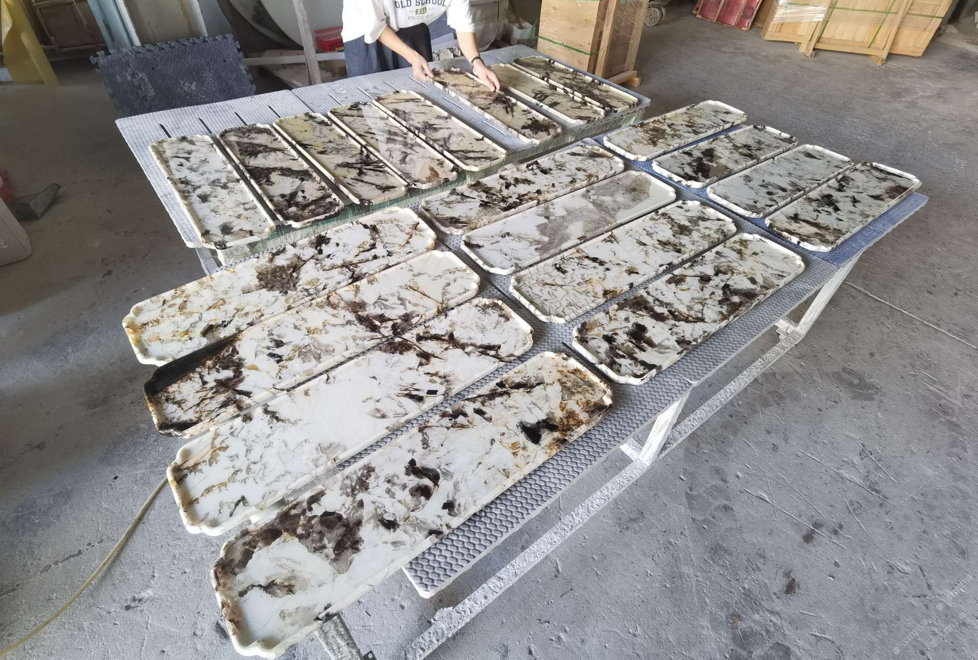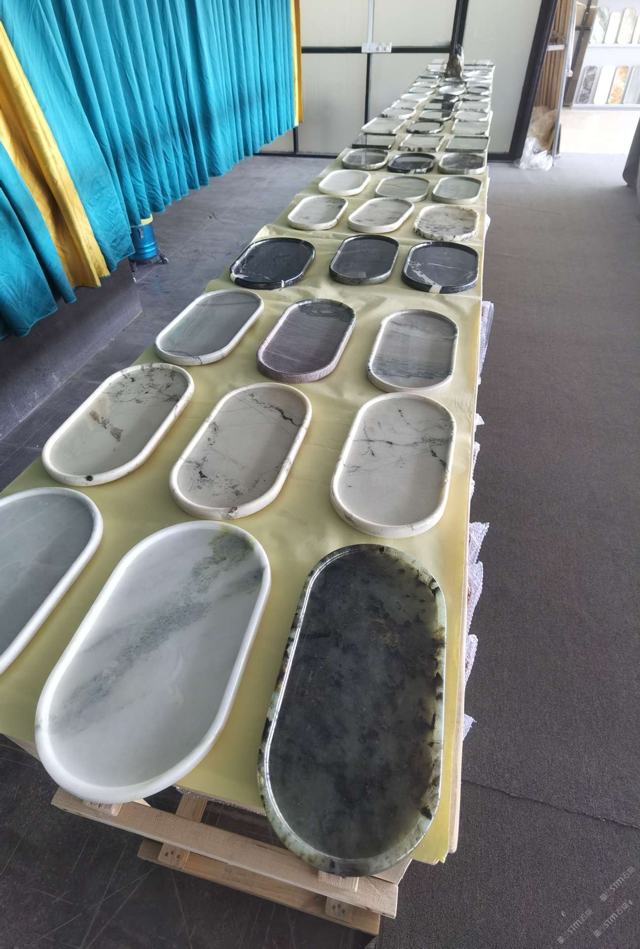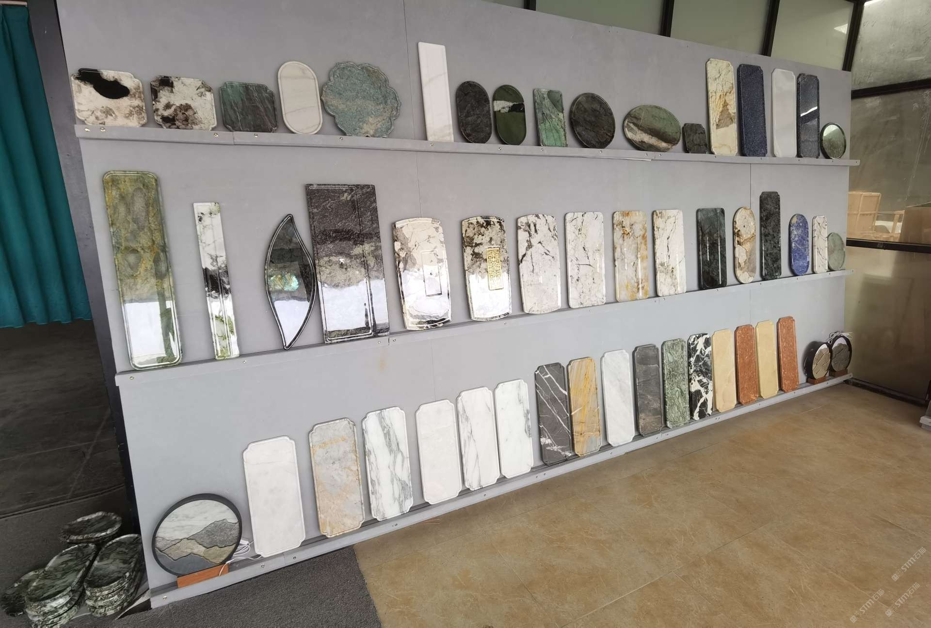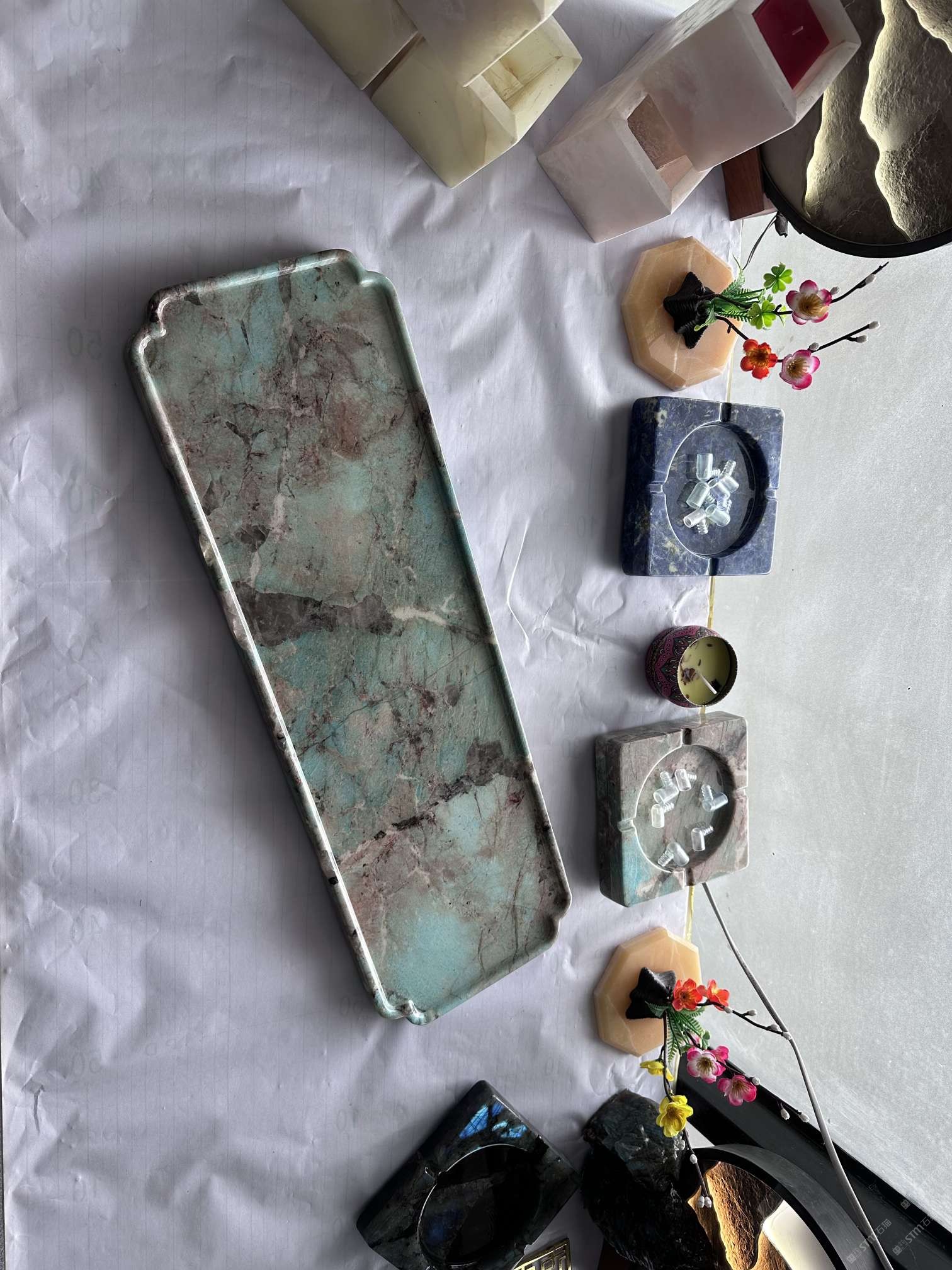 中国水头国际石材城 奢石家具厂镜面封釉工艺源头厂家高端定制茶盘 干泡台 湿泡茶盘 边几 餐桌 茶桌 五金底座搭配15710666636