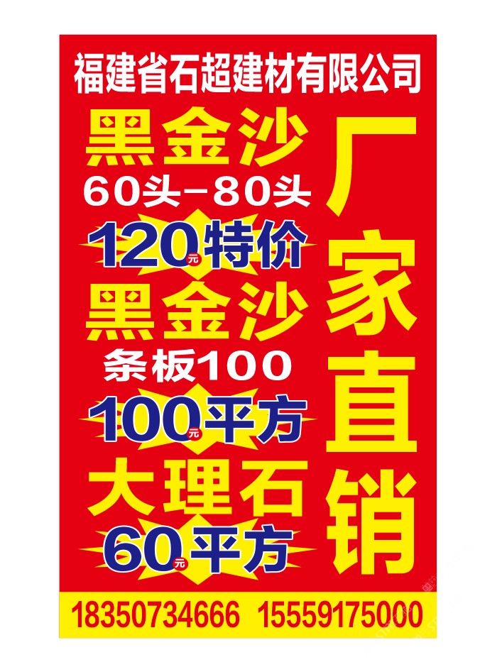 福建石超石业,经营进口黑金沙,英国棕,巴西金钻,奥特曼,白玉兰,自有半成品加工厂、成品加工厂。承接黑金沙条板、成品、水景、地铺、异形等工程单加工,欢迎您的光临!15559175000、18350734666石总