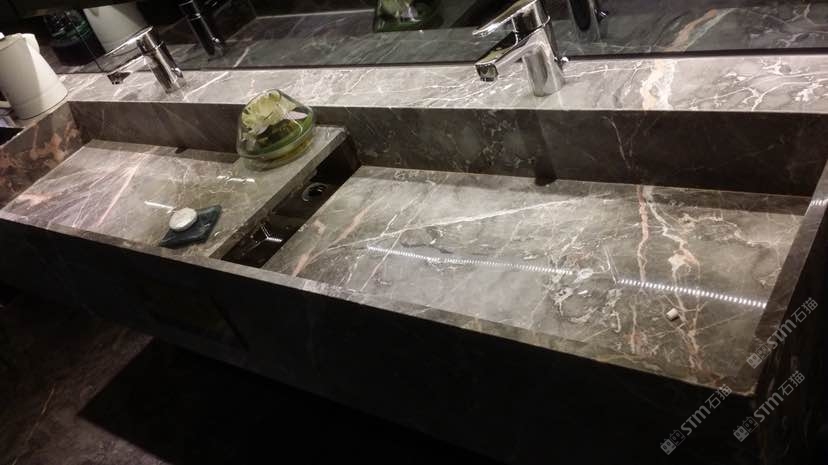 徕卡灰做酒店地面,背景墙面,吧台,整体卫生间,线条门套都不错