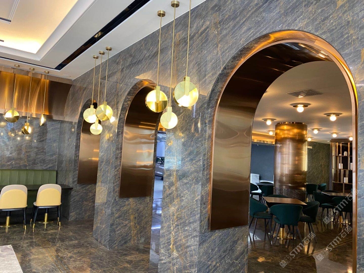 发布信息: 长春富邑四季汇会馆 ”琥珀灰与金色金属的兼容性极高,从门口金字招牌,到金色门框,到用于隔断的金色架子,再到装饰用的悬吊的金色饰物,大理石加金属,金色配合深色,碰撞到一起进一步营造高端奢华感?!?/span>