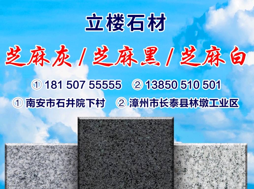 发布信息: 【长泰立楼石材厂】主营芝麻黑,芝麻灰,654,655,墓碑石,路沿石,地铺,外墙干挂