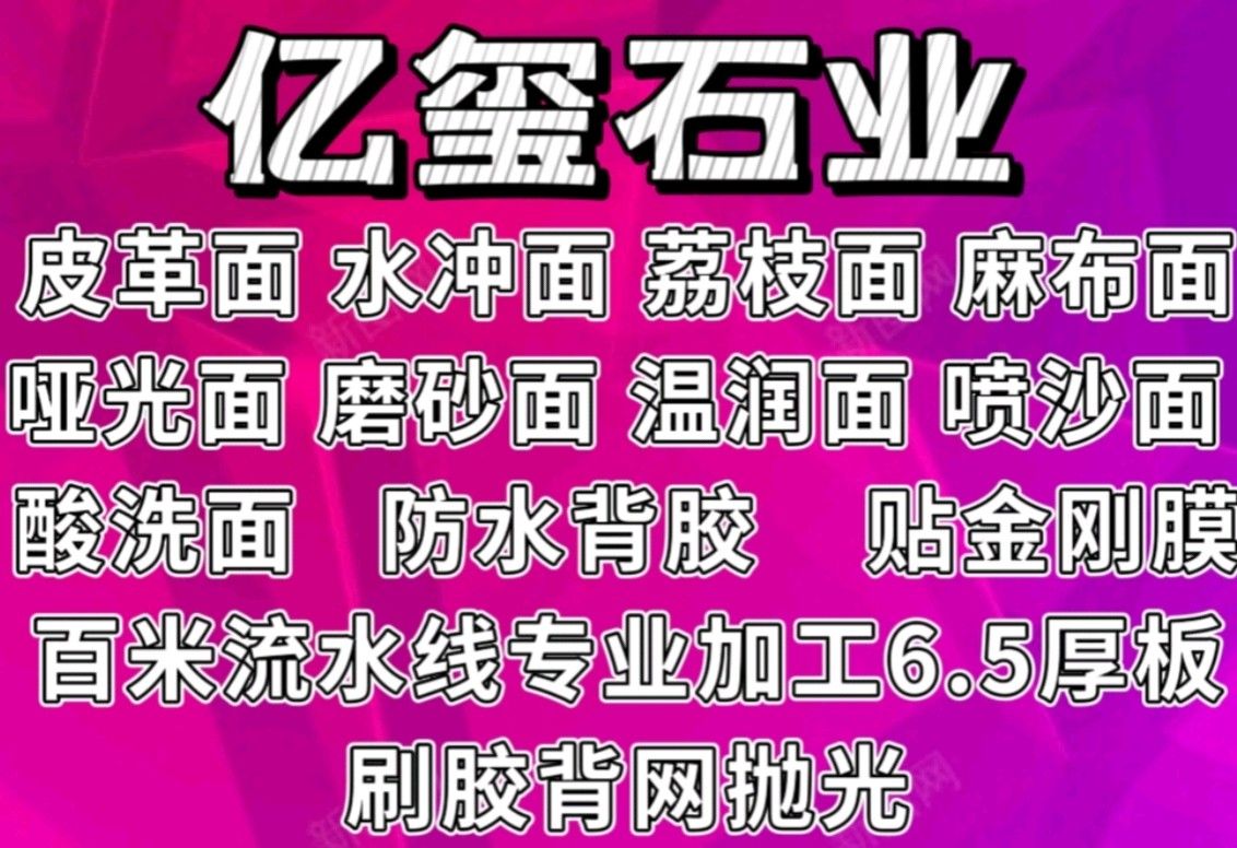 发布信息: 专业加工皮革面 大板荔枝面 酸洗面 高压水冲面 喷沙面 温润面 6CM厚板刷胶抛光 哑光面 磨砂面 贴金刚膜 奢石打网布 防水背胶 扫描 拉丝面 水头曾庄汇恒C5 17750877905