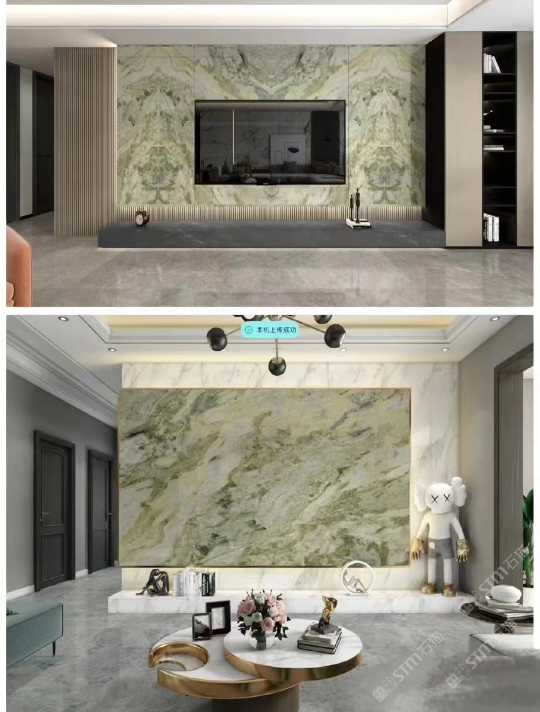 发布信息: 大自然呈现出的美丽画卷!我们只是大自然的搬运工!近几年流行的一款天然材料:绿翡翠??白绿灰三色交织在一起,板面透露出自然界的灵魂与质感!源于自然与岁月的沉淀!局部的翡翠质感谦虚的体现出它的,运用在背景墙、地面铺设、吧台、台面都是不错的选择,一个空间需要一颗富有质感的天然石头??来烘托营造一种感