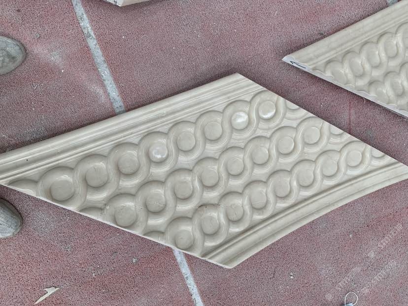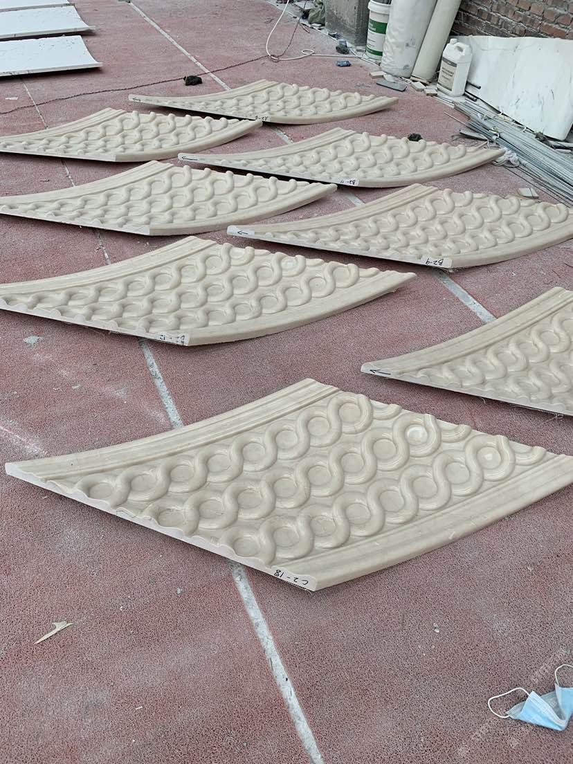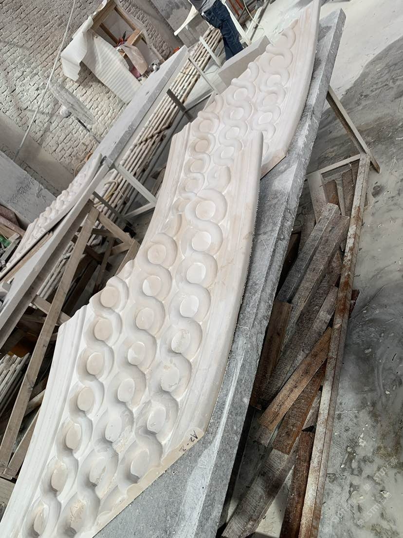 发布信息: 本梯内弧采用莎安娜整石雕刻,图案由地下室至五楼一路延续无中断,非??佳榉叛?,加工,安装,现场完全不能动刀,整栋采用莎安娜荒料加工。