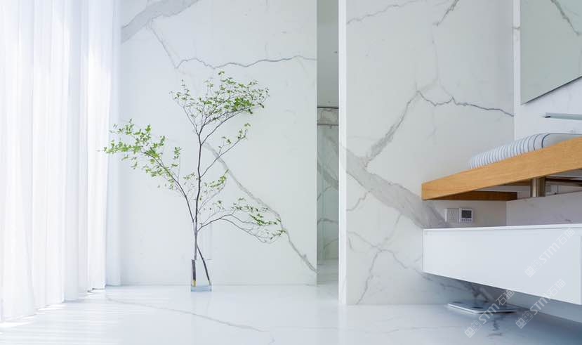 发布信息: 杭州别墅的卫生间案例??,全屋鱼肚白大理石,是不是您喜欢的极简风格#鱼肚白#新鹏飞白石馆