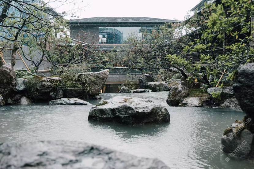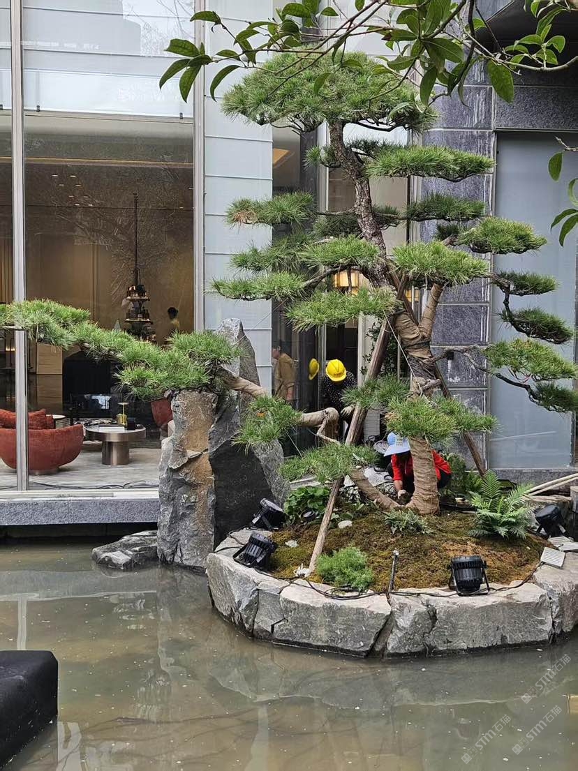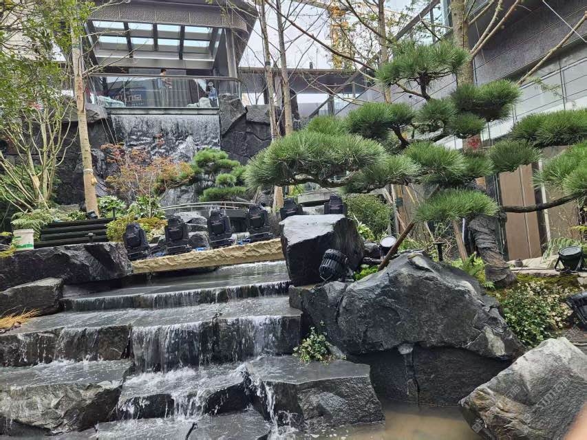 中国黑,山西黑园林景观石安装后效果