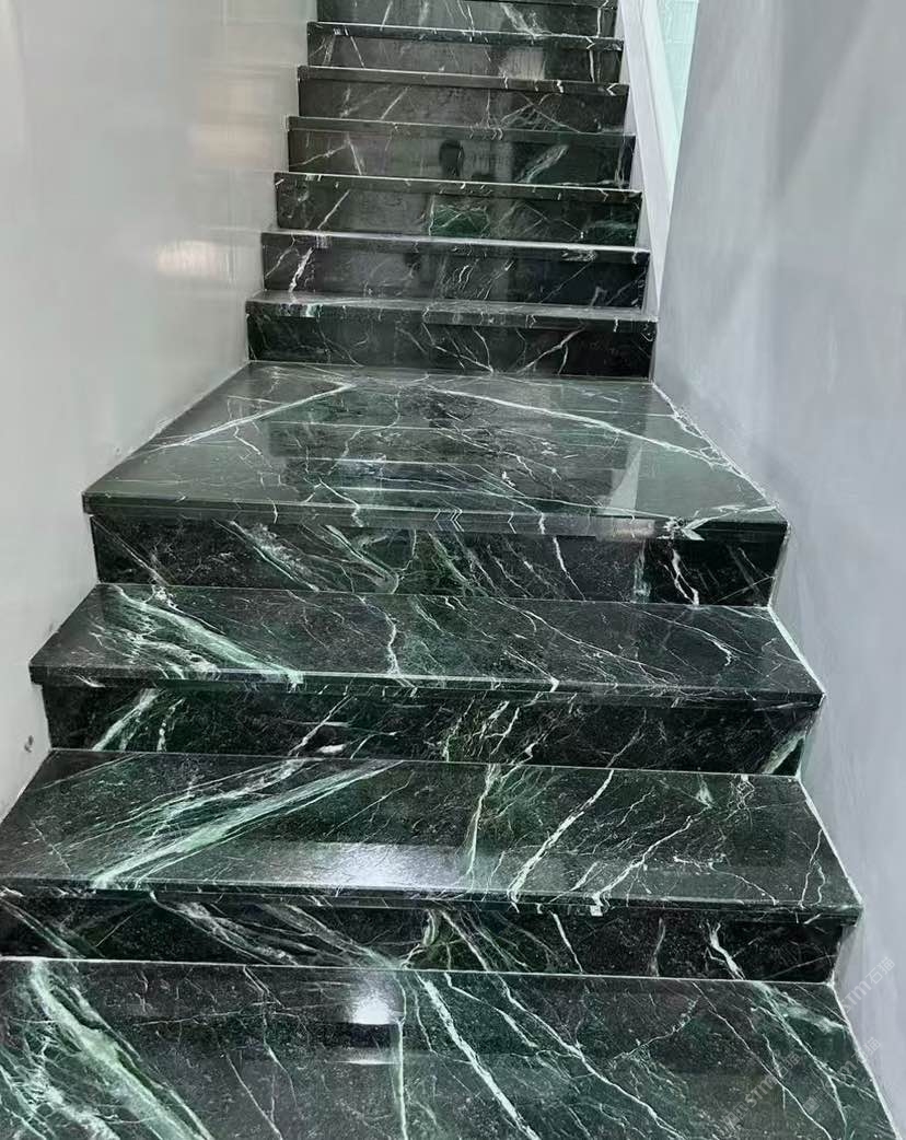 普拉达绿楼梯吧台装修效果!工程荒料批发