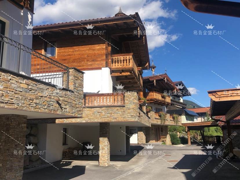 锈石英侧粘文化石,水泥胶加网粘接,古朴自然,广泛用于别墅,墙面装饰