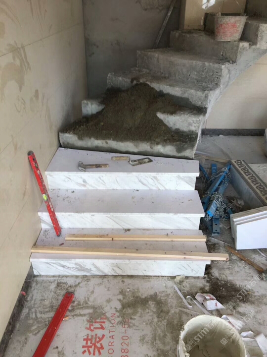 发布信息: 老矿爵士白干挂做成的墙面以及楼梯。白色显现出的奢华高档是其他色系石材做不出的。