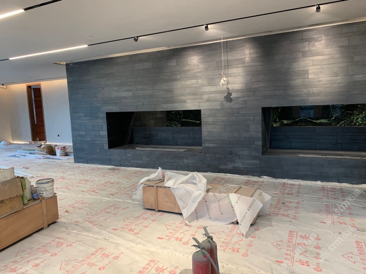 墙地面效果惊人,真火壁炉更是亮点,中式别墅,茶楼,高档酒店必备!