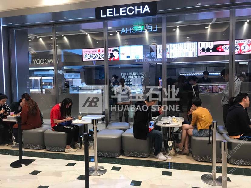 发布信息: 上海世贸乐乐茶连锁店 产品:华宝高性能无机石 编号:AIS-077、AIS-047 加工:地面哑光、桌面磨光