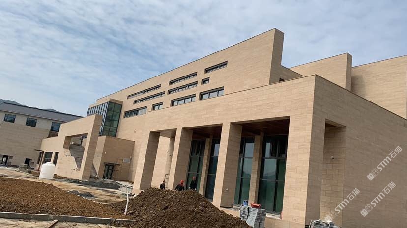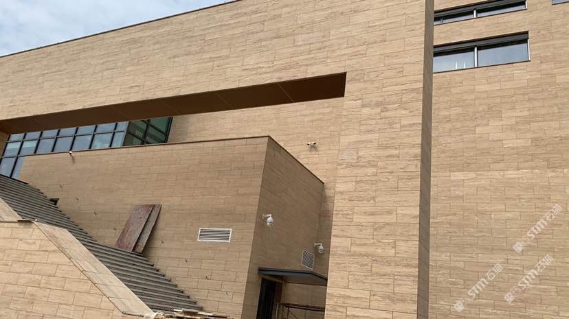 发布信息: 外墙采用伊朗米黄洞3.5cm干挂,纹路清晰可见,板面品质稳定无色差