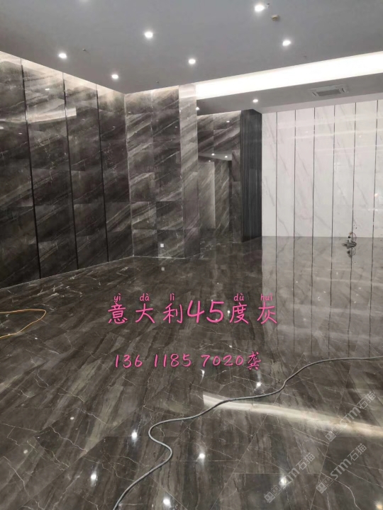 45度灰大面积用于五星酒店大厅地面,墙面,卫生间台面等公共部位