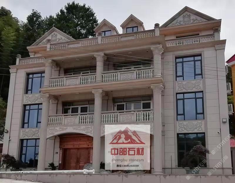 别墅整体效果,材质分别虾红永定等红花岗岩,