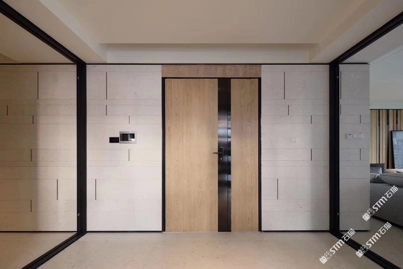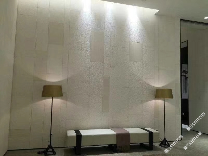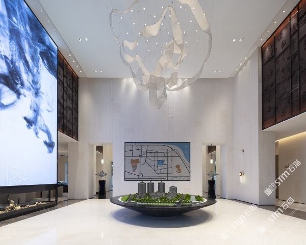 湖山源著售楼中心,内装墙面大量采用米诺石