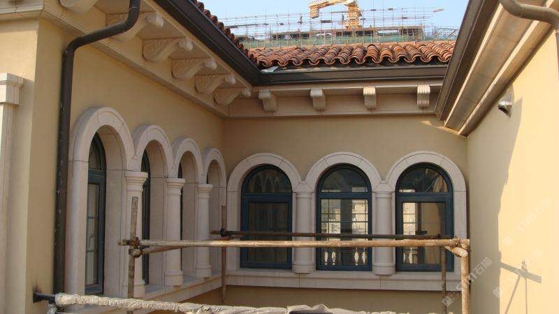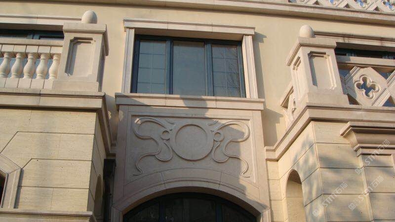 外墙采用葡萄牙米黄干挂,以及大量异型,线条及雕花。