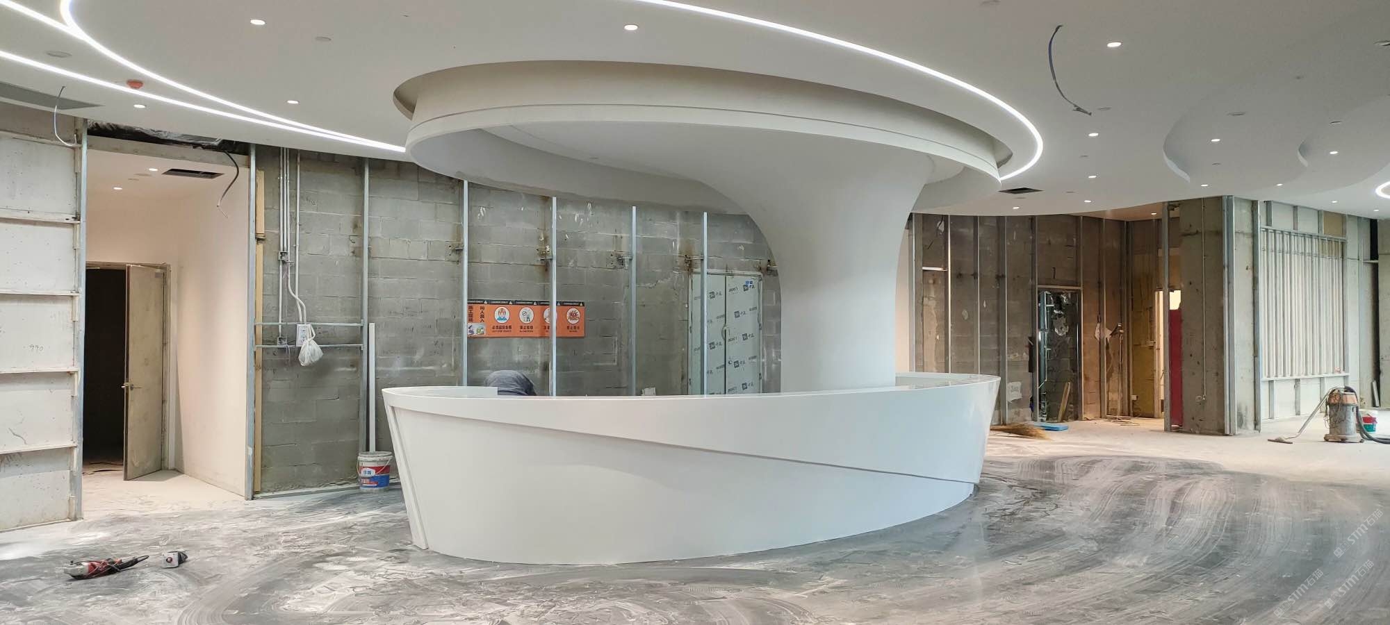 亚克力人造石圆弧服务台和背景墙