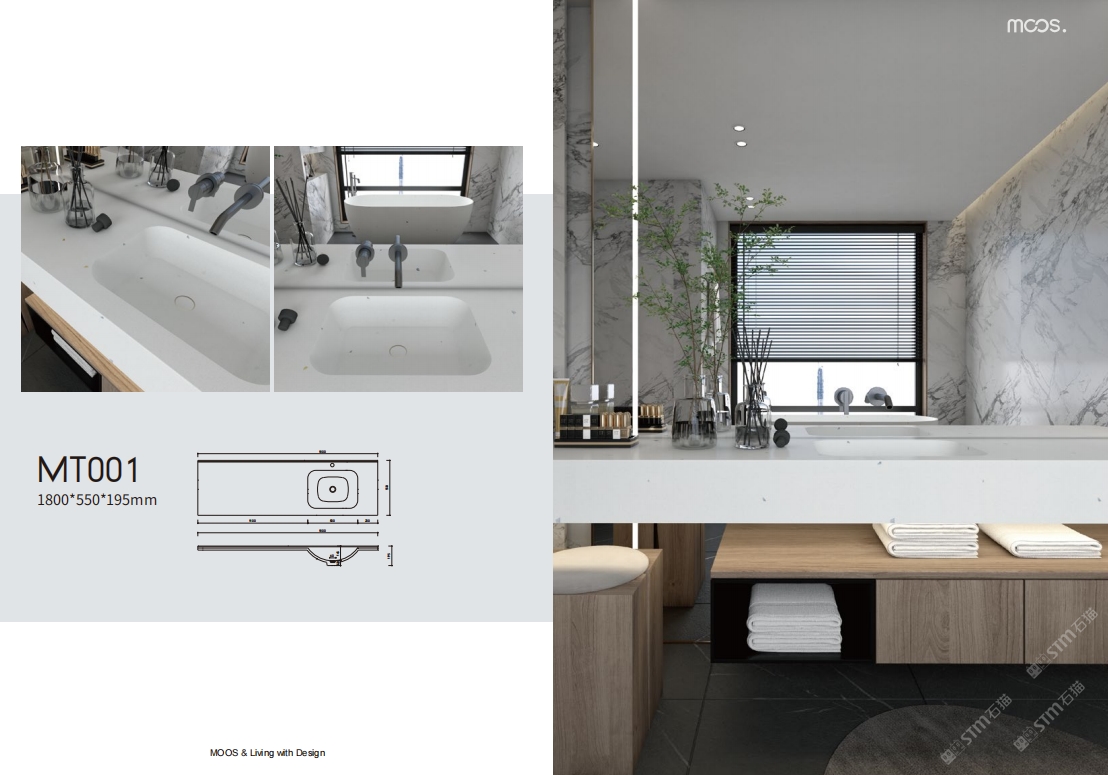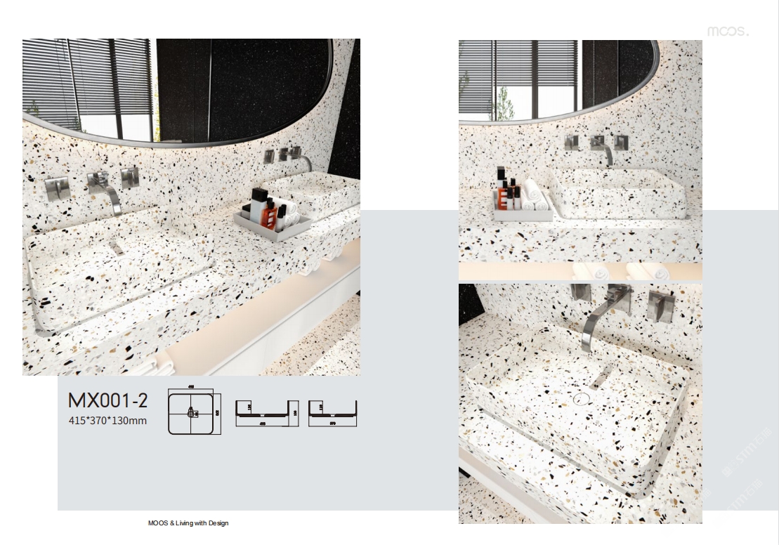 「MOOS魔石卫浴」无机水磨石一体化台盆设计