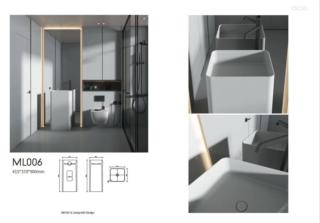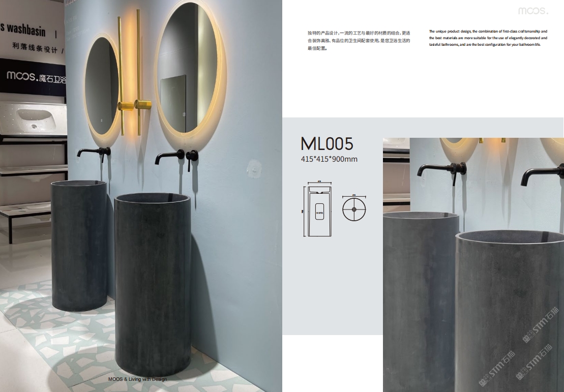 「MOOS魔石卫浴」无机水磨石一体化台盆设计