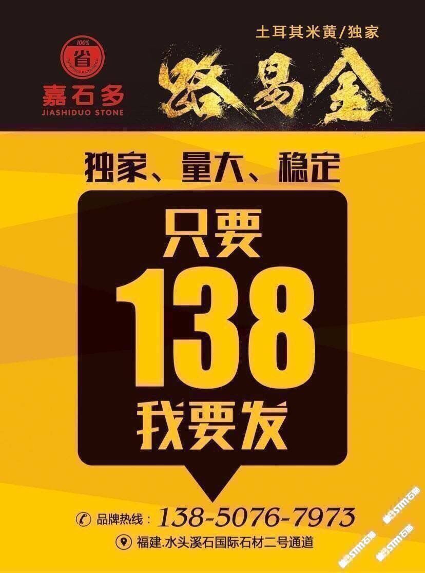 发布信息: 产地:土耳其 油性好,亮度佳,矿山直营! 独矿!独矿!独矿! 量大!量大!量大! ?工程? 很受瞩目的一款米黄新品 咨询热线:18965506830姚/18965506838吴 地址:华辉大板市场B区