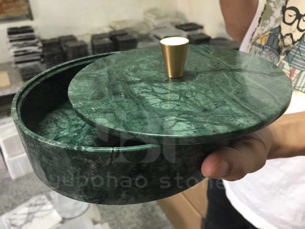 大花绿圆形收纳盒——石材工艺品