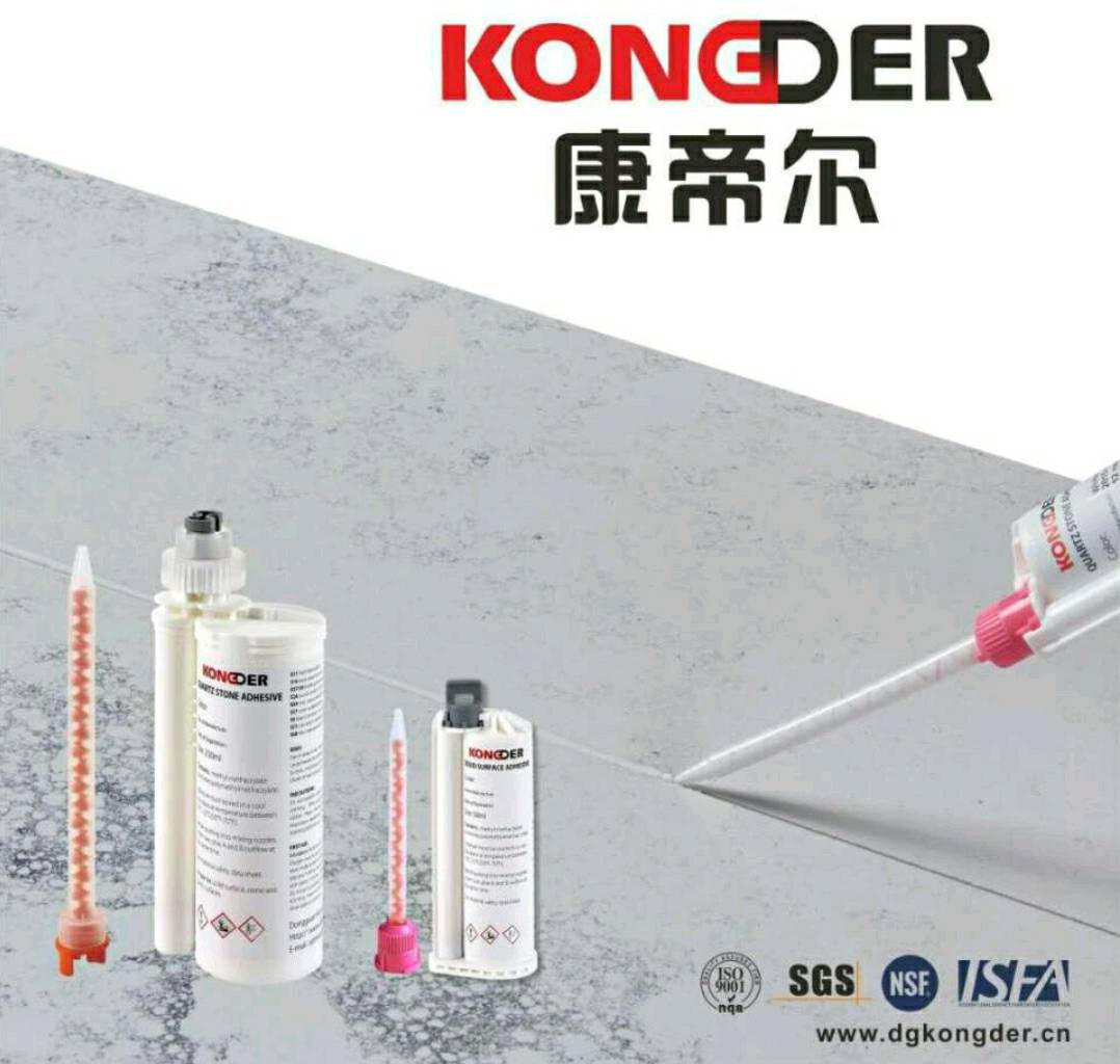 发布信息: 东莞康帝尔胶水(石英石、岩板、人造石、天然石) 1、粘接强度高,可以达到板材的百分之九十的强度。 2、胶水颜色稳定,十年不变色,不黄变。 3、胶水环保无毒通过检测有环保资质9年来已经出口39个国家。 4、可塑性强,接驳打磨好之后通过加温可以弯曲。 5、提供差异化服务:可以来样定制,包括颜色定制、性能定制等,并提供OEM贴牌生产。 东莞市康帝尔工业材料有限公司成立于2005年,专业专注石材胶粘剂、需要了解试样的欢迎联系我13925502241