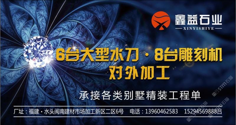 发布信息: 《鑫益水刀·雕刻》—你身边的水刀拼花专业生产商 本厂是一家专业生产水刀拼花及雕刻的厂家,配备6台大型水刀、8台CNC雕刻机,是您工装、家装的合作伙伴!支持来料加工、含料或者合作,欢迎洽谈合作!期待光临指导?。?地址:福建·水头闽南建材市场加工新区二区6号 ??:13960462583,15294569888吕(微信同号)