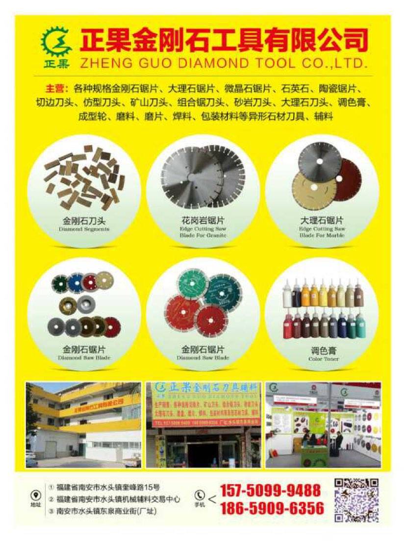 发布信息: 【工厂批发】各种规格金刚石锯片、大理石锯片、微晶石锯片、钎焊锯片、石英石、陶瓷锯片、切边刀头、仿型刀头、矿山刀头、组合锯刀头、砂岩刀头、大理石刀头、调色膏、成型轮、磨料、磨片、焊料、包装材料、电动工具及异形石材刀具、辅料 热线电话:15750999488 微信同号 需要私聊,欢迎来电!