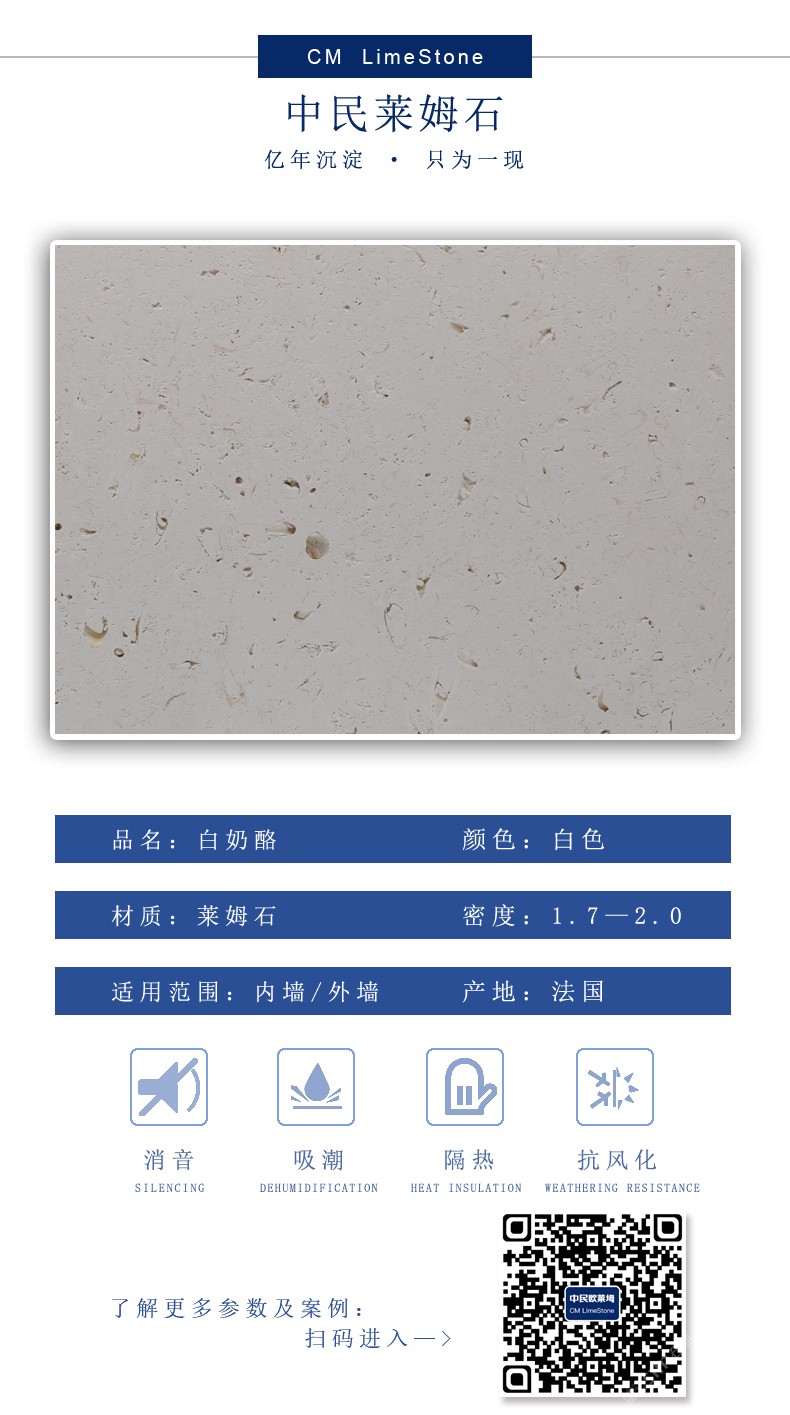发布信息: 超白洞石白奶酪 亿年前的海底世界 莱姆石称得上是有故事的石头,它含有大量的亿万年前的海底生物化石。每一片天朗明戈石砖上都有一个久远的生命故事。在经历沧海桑田之后,它们被永恒地定格在时间停止的那一刹那。我们劈开岁月的岩层,让它重现天日之下,将它带到您的家中,愿在这钢筋混凝土的人造世界中,带给您自然的气息。 我们坚信,来源于生命的艺术亘古永存,大自然的鬼斧神工能锻造出真实的艺术视觉。