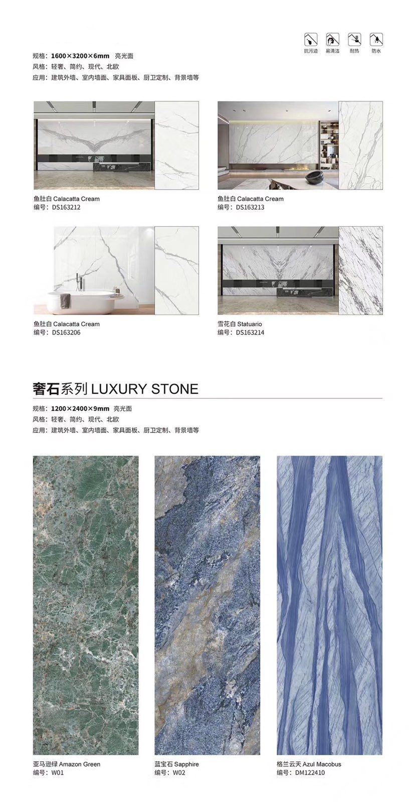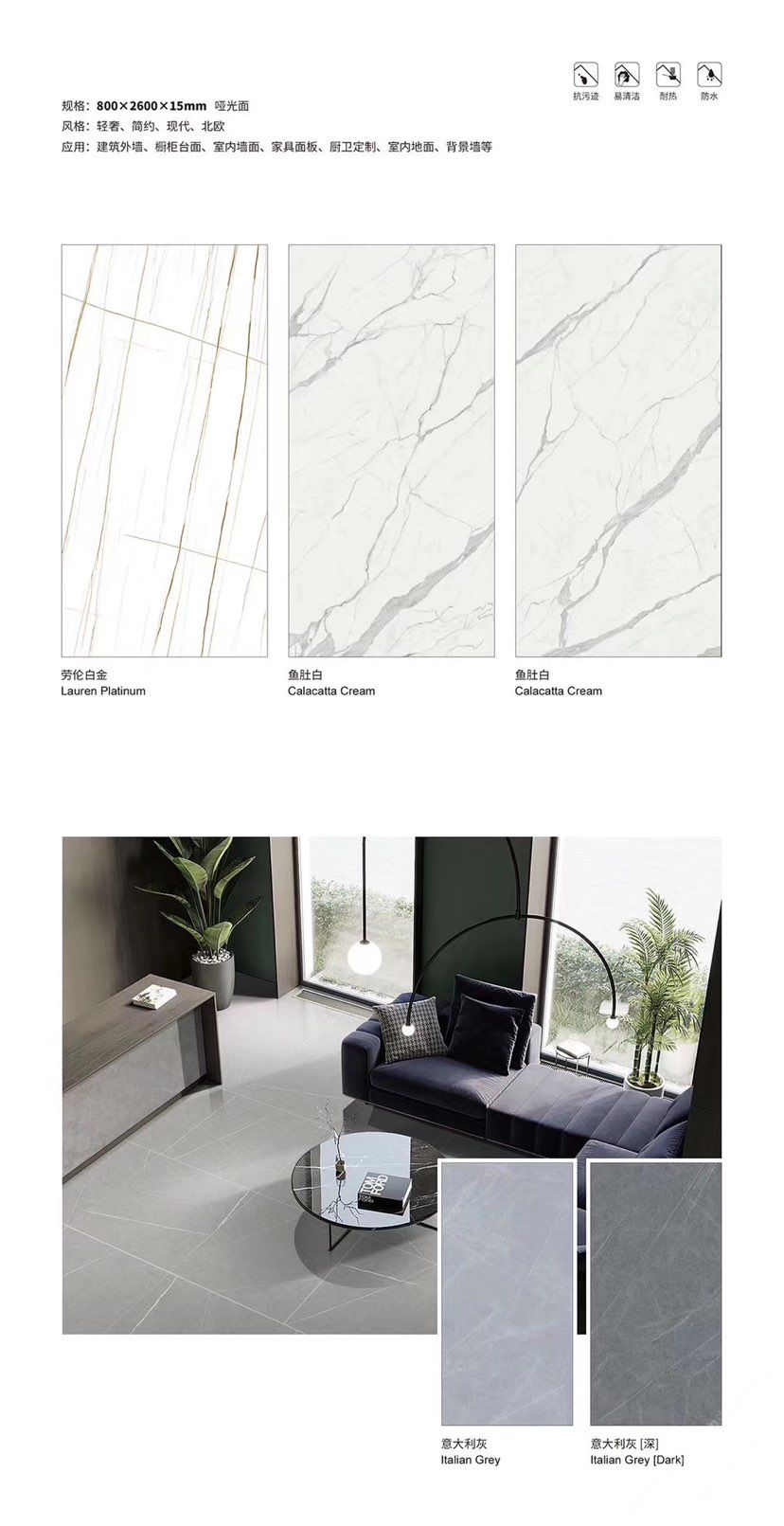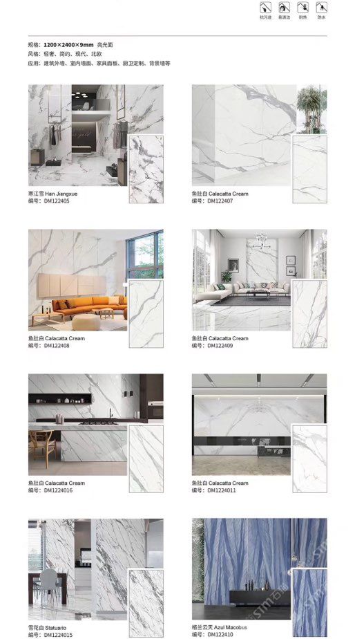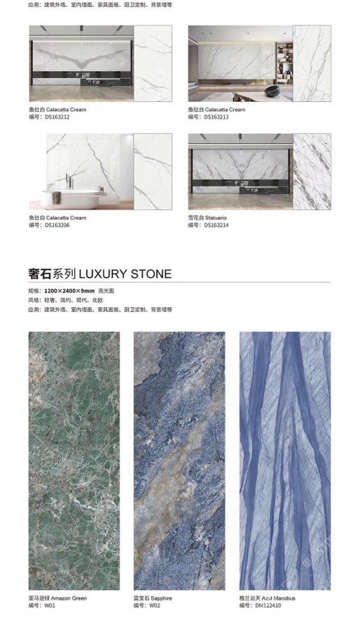 发布信息: ????SIBELAN 斯贝纳岩板???? ????意大利设计师精选岩板???? 我们可以帮老总您加工为成品, 全国范围內可安排专业团队安装. 做到您一次性采购 省心. 放心. 省时. 低价! 岩板纹路版面全多达199 款 励志做服务五星的岩板专业供应商 鱼肚白 雪花白 格兰云天 寒江雪 爵士白 幻影灰 劳伦黑金 火山灰 亚马逊 艾维拉 罗马黑檀 贝特岩 细花白 罗马灰 云朵拉灰 鱼肚金 莎罗娜 莎罗兰 劳伦白金 拉萨白 中花白 灰冰玉 卡拉拉白 撒金黑 清水玉 萨瓦灰 莎士比亚 大花灰 白冰玉 银灰洞 阿玛尼灰 绿纹玉 绿冰玉 蓝纹玉 保加利亚灰 铁锈 黑木纹 流砂灰 纯白 纯灰 纯黑 TEL: 15905069590 聂 各种版面规格全部如下: 1200×600×11mm 哑光 1500×800×11mm 哑光 1800×900×11mm 哑光 1800×900×12mm 哑光 2600×800×15mm 哑光 2400×1200×6mm 哑光/亮光 2400×1200×9mm 哑光/亮光 2400×1200×15mm 哑光 2700×1200×6mm 哑光/亮光 2700×1600×12mm 哑光/亮光 3200×1600×6mm 哑光/亮光 3200×1600×12mm 哑光/亮光