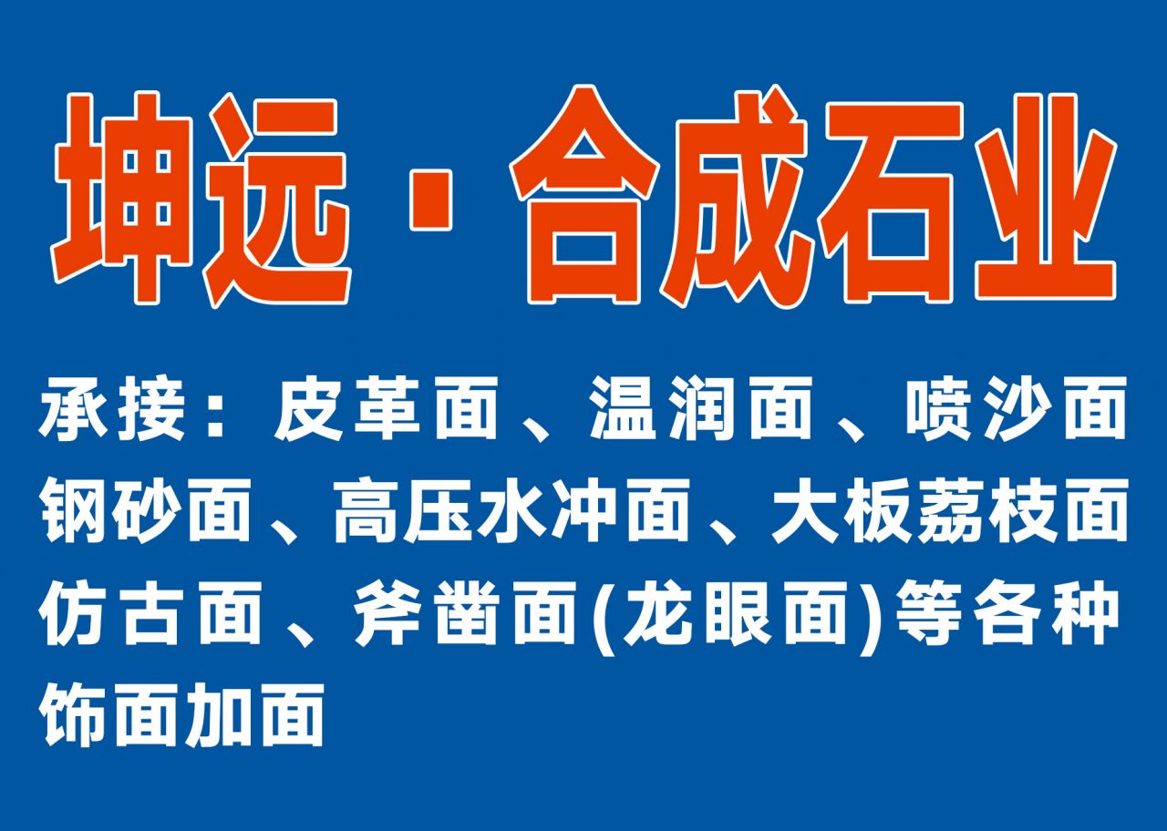 发布信息: 专业承接大板喷沙面,皮革面,大板荔枝面,高压水冲面,温润面,仿古面,酸洗面等各种石材饰面加工。地址:水头镇永泉山工业区,钧翔石业材3号门,电话:13788864004