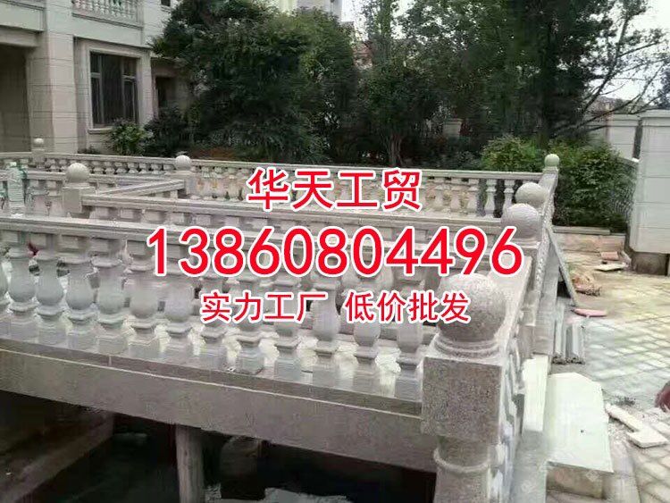 虾红花岗岩石材河道护栏景观栏杆石雕刻加工厂家直销