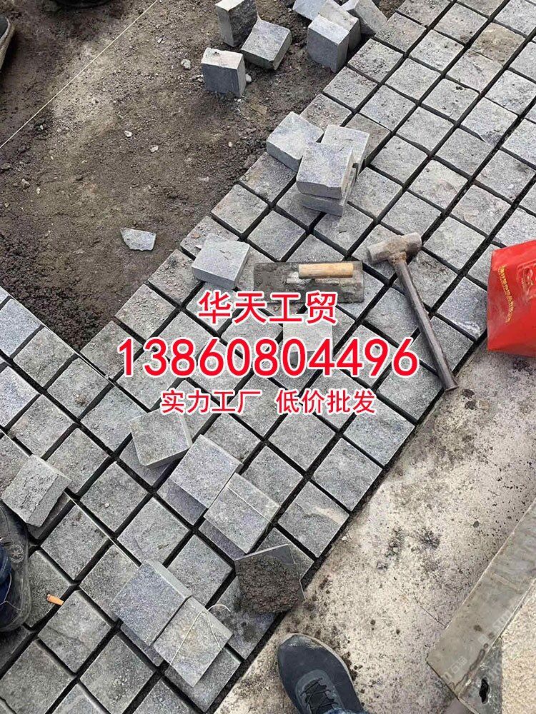 老矿芝麻黑石材火烧面方块石深灰色麻石小料石厂家