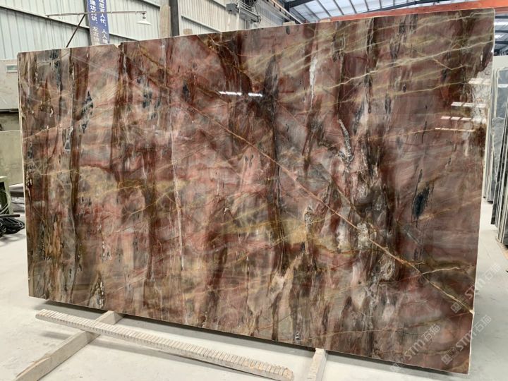 泰龙石材:矿山直销奥利红玉荒料,大板