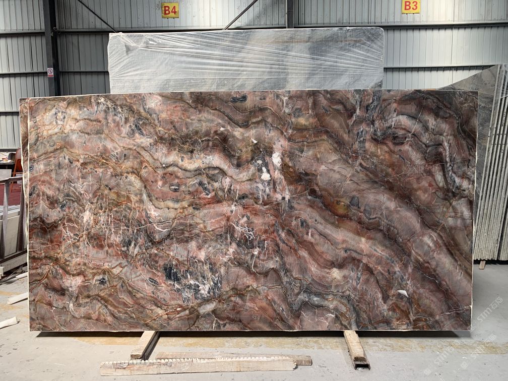 泰龙石材:矿山直销奥利红玉荒料,大板红色大理石